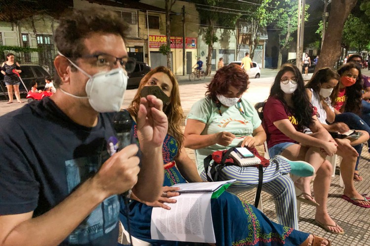 O candidato a prefeito de Fortaleza pelo Psol, Renato Roseno, promoveu na tarde desta terça-feira, 29, uma roda de conversa na Praça da Gentilândia, no bairro Benfica, para discutir Ecossocialismo. A programação do parlamentar iniciou às 12h, com entrevista à emissora de rádio na capital, e adentrou o início da tarde com a participação no III Webnário de Justiça Restaurativa, realizado virtualmente.
