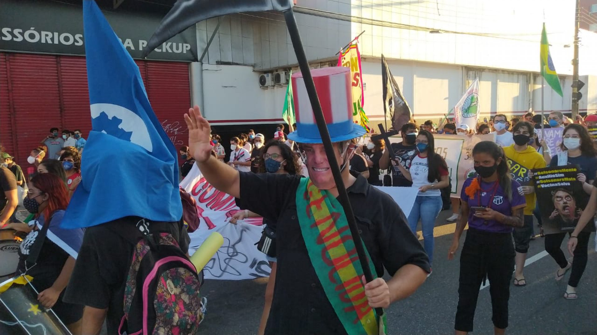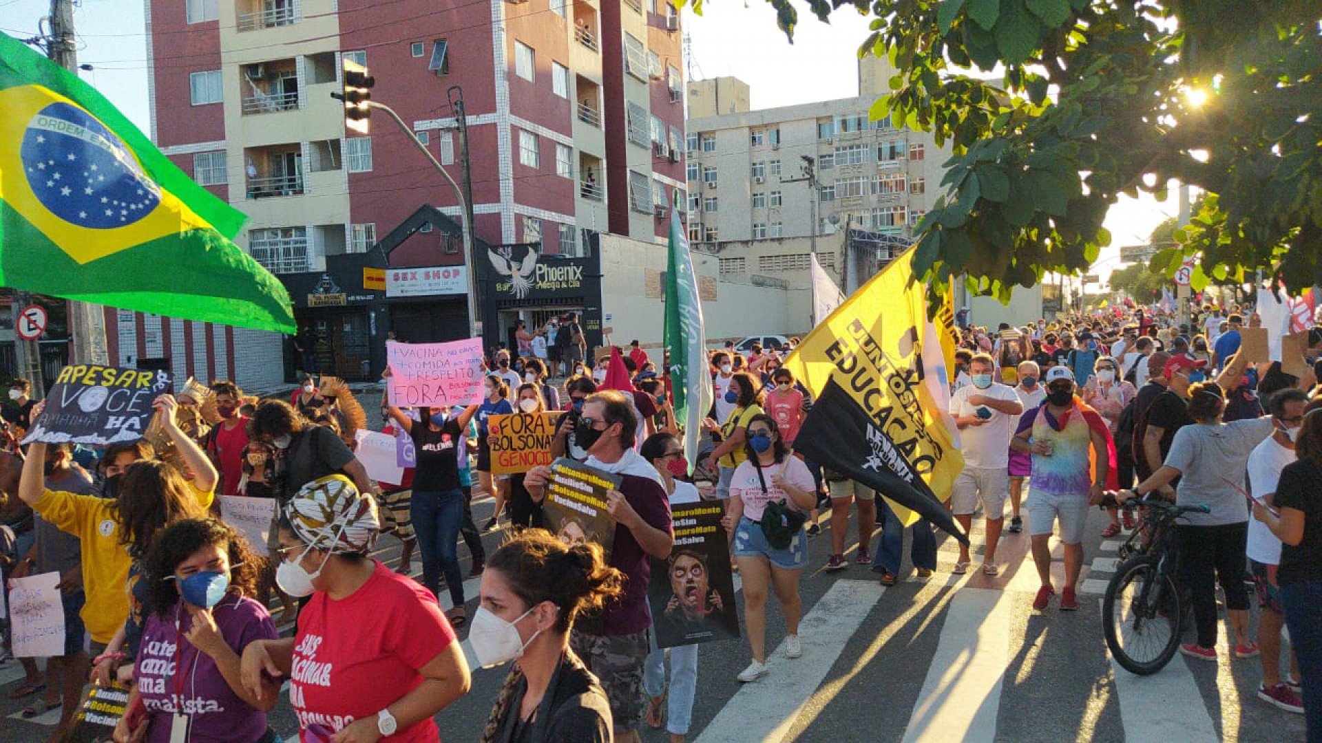 Manifestantes realizam protesto contra Bolsonaro no Benfica, em Fortaleza