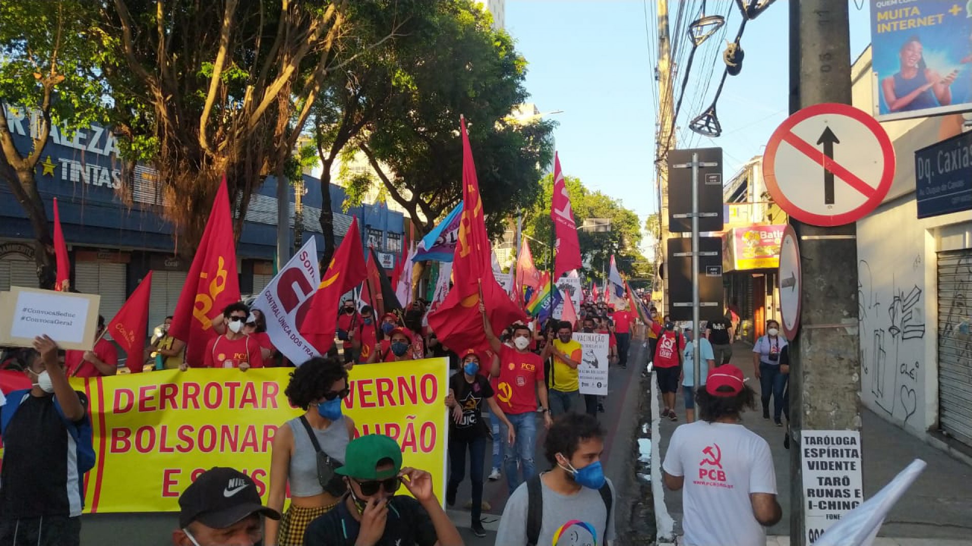 Manifestantes se reúnem, na tarde deste sábado, 19, no Benfica, bairro universitário em Fortaleza, para protestarem contra o presidente Jair Bolsonaro (sem partido), criticando principalmente a atuação do mandatário frente a pandemia da Covid-19. A capital cearense também registrou uma carreata com o mesmo propósito.