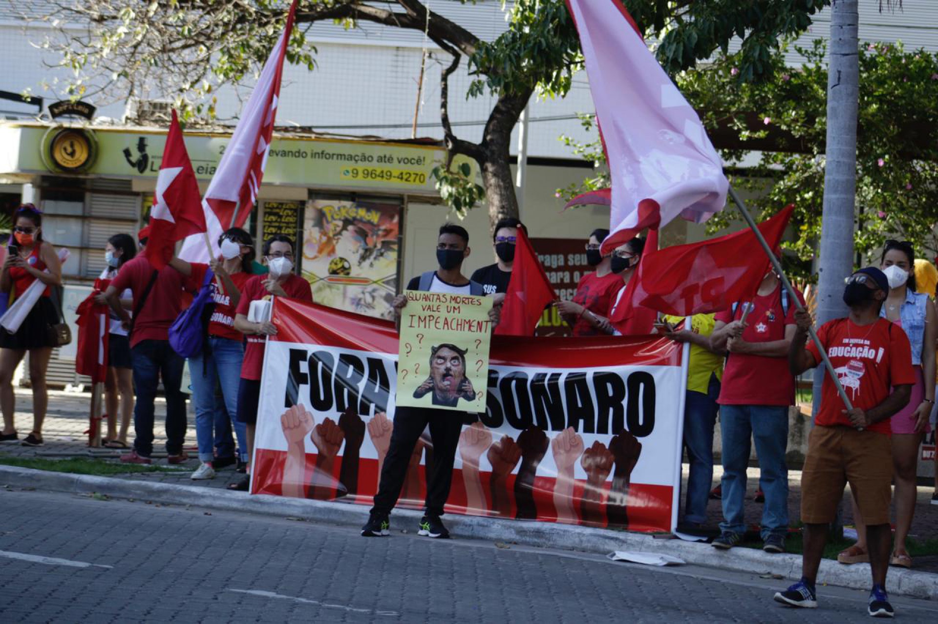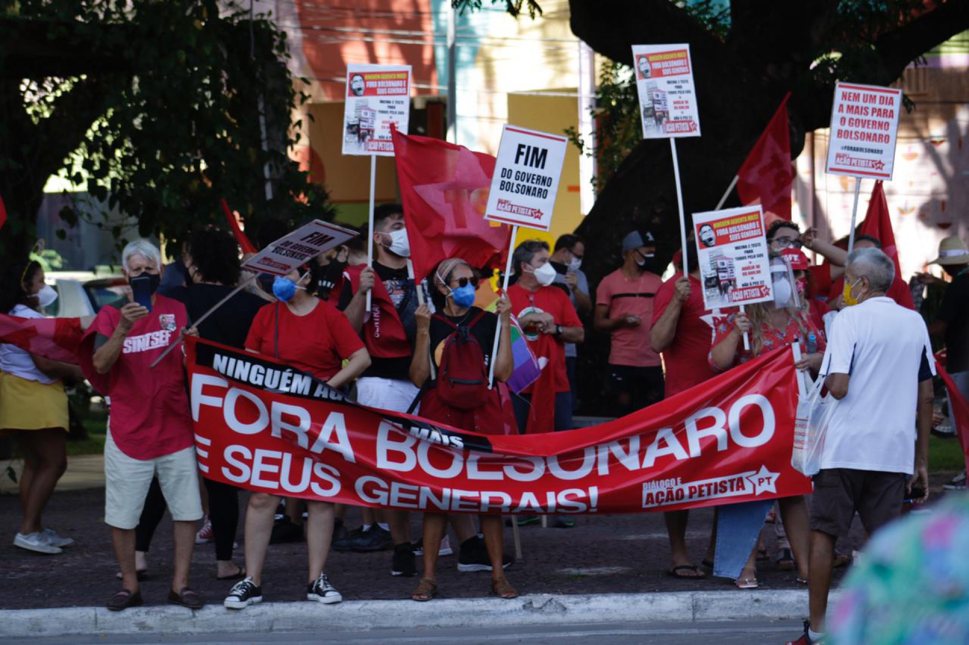 Na esteira dos protestos contra o presidente Jair Bolsonaro (sem partido), registrados desde a manhã deste sábado, 3, em diversas cidades do Ceará e do País, teve início, às 15 horas, uma manifestação na Praça Portugal, no bairro Aldeota, em Fortaleza. O ato, organizado por movimentos sociais e sindicais, pede o impeachment de Bolsonaro, maior agilidade na vacinação contra a Covid-19, a volta do auxílio emergencial, dentre outras pautas.