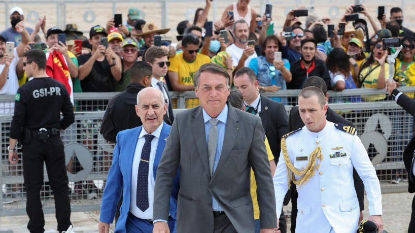 Durante seu discurso nesta manhã, o presidente disse que vai adotar um tom mais robusto em SP e que não vai admitir que “outras pessoas joguem fora das quatro linhas” da Constituição. Nas últimas semanas, Bolsonaro tem investido contra ministros do Supremo Tribunal Federal (STF), sobretudo Alexandre de Moraes e Luís Roberto Barroso.