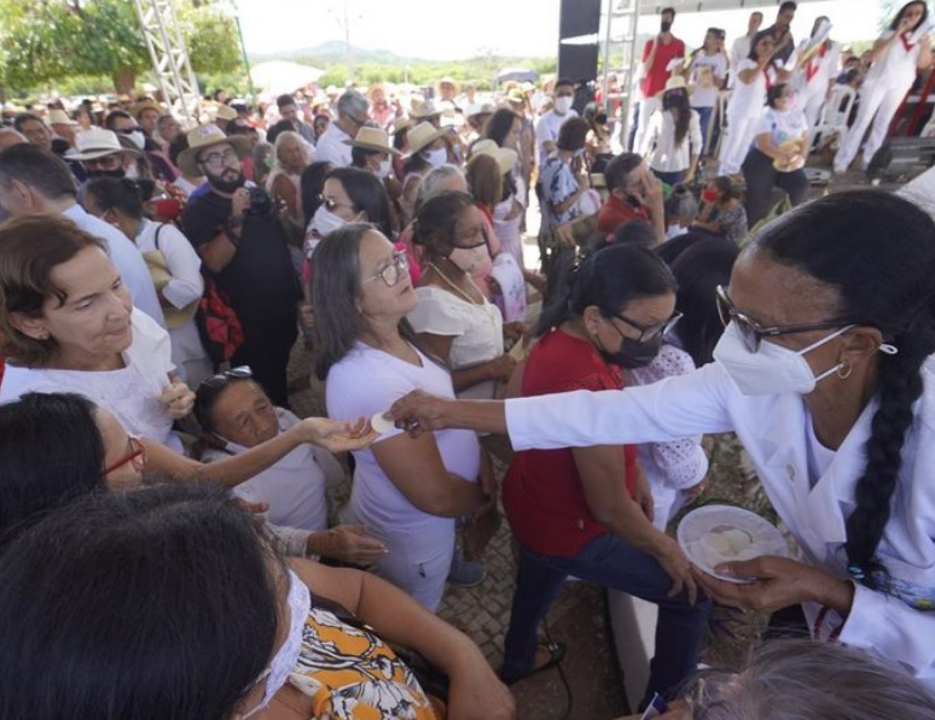 "Momento de muita fé e reflexão. Estive na manhã deste domingo na missa da tradicional festa religiosa dedicada à Sagrada Família – Jesus, Maria, José, no distrito de Marrecas, em Tauá. As celebrações, que completam 309 anos em 2022, reuniram fiéis de todas as regiões e de outros estados. Muito obrigada a todos pela receptividade!", postou Izolda nas redes sociais.