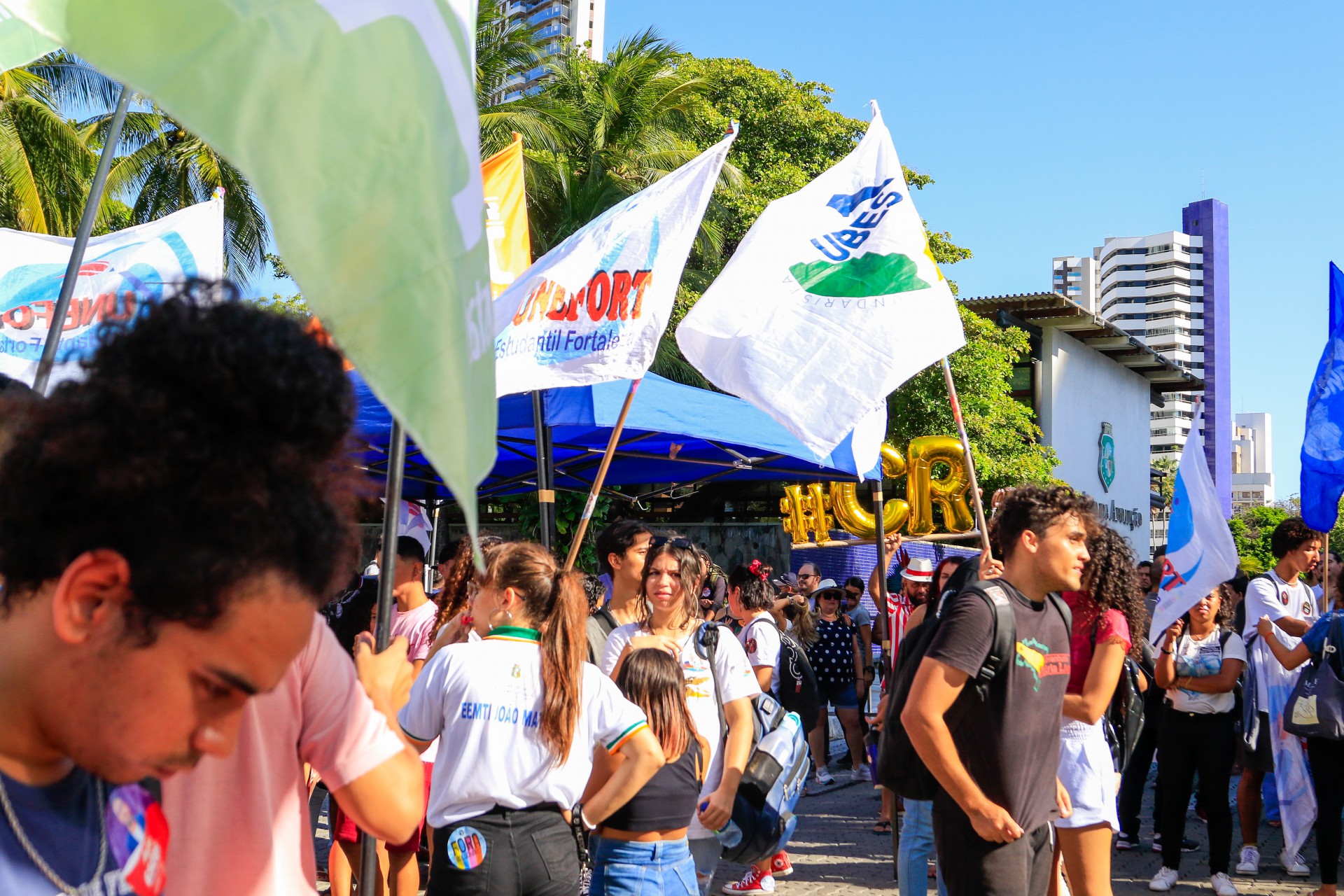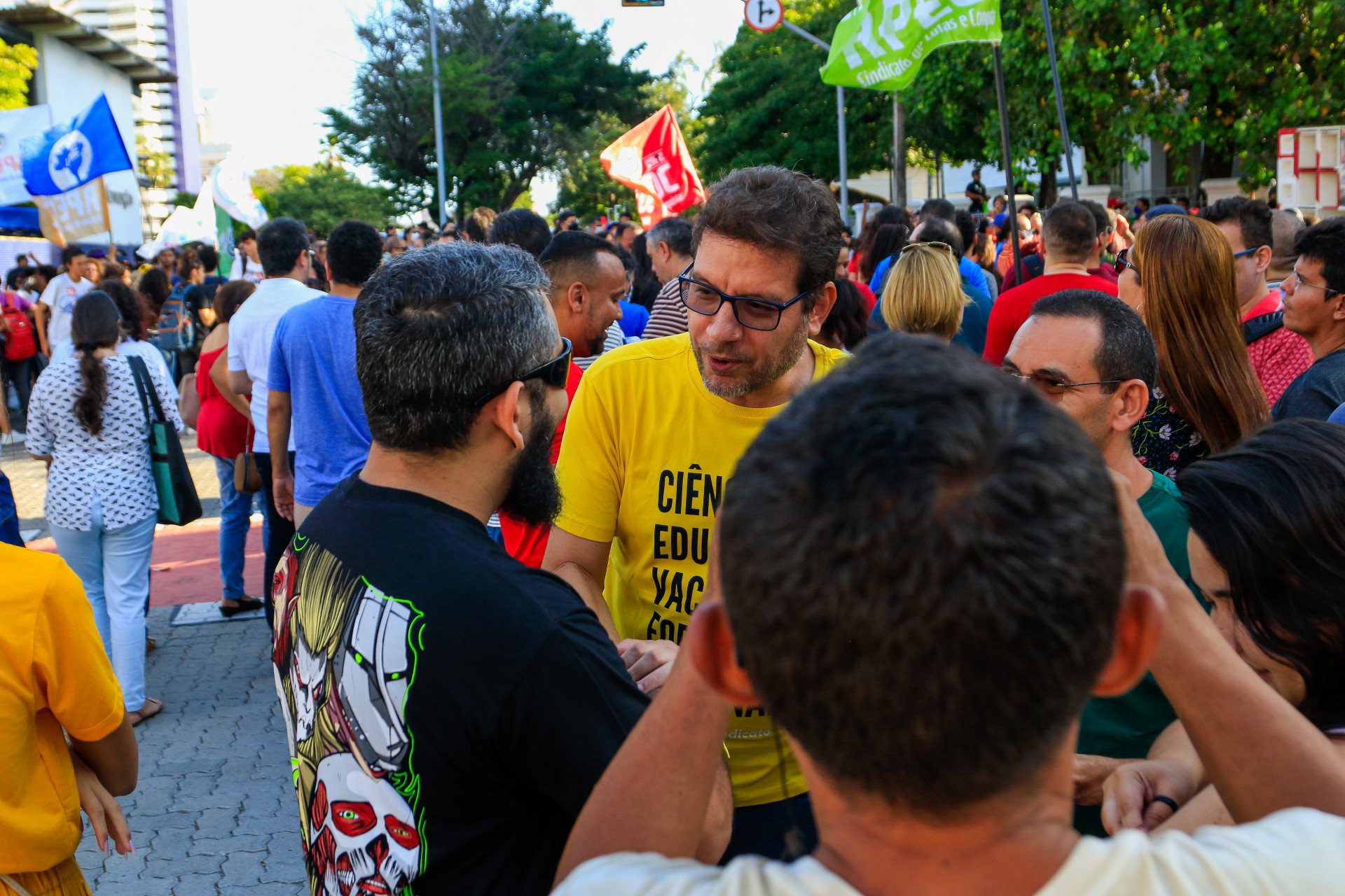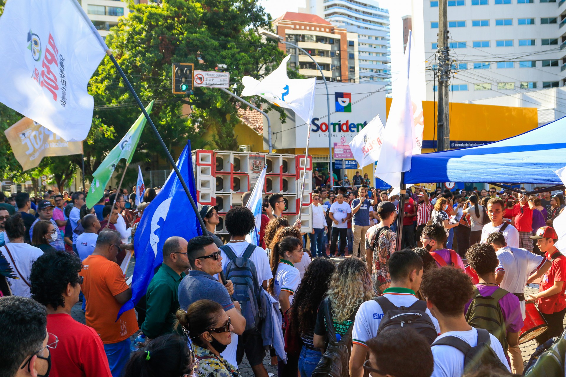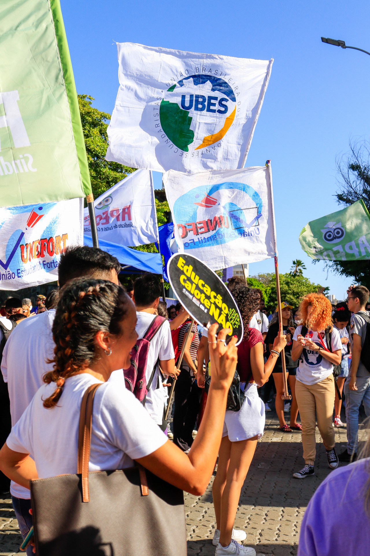 O Sindicato dos Professores e Servidores da Educação Estadual do Ceará (Apeoc) realizou protesto na tarde desta segunda-feira, 5, em frente ao Palácio da Abolição, sede do Governo do Ceará, em Fortaleza. Estiveram juntos professores, alunos e outros movimentos sindicais para reivindicarem - entre outras pautas -, o pagamento de 60% dos recursos do Fundo de Manutenção e Desenvolvimento do Ensino Fundamental e Valorização do Magistério (Fundef). Caso não tenham as questões atendidas nos próximos 15 dias, a categoria promete convocar assembleia geral para discutir possibilidade de entrar em greve.