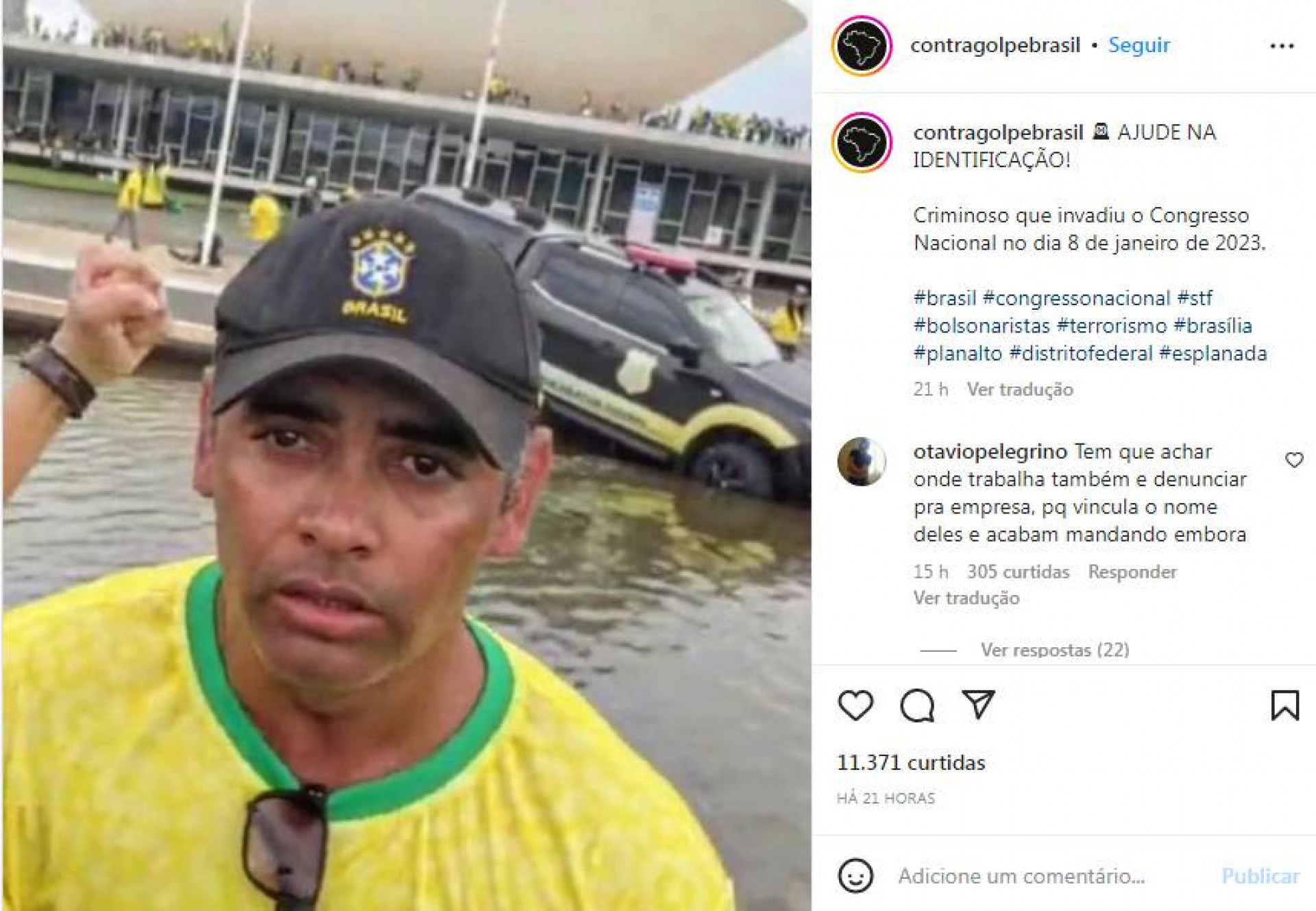 A página no Instagram “Contragolpe Brasil” foi criada por internautas na noite deste domingo, 8, para ajudar na identificação dos participantes das invasões e dos atos terroristas promovidos em Brasília.
