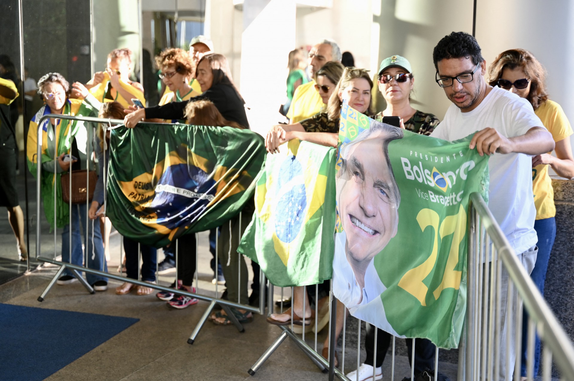 Bolsonaro não passou por dentro de terminal, onde era aguardado por quase 200 seguidores, muitos deles com bandeiras do Brasil e aos gritos de "O capitão voltou!".