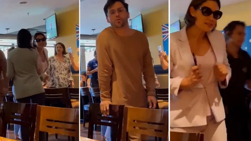 Ao lado da esposa de Bolsonaro, o maquiador e amigo de Michelle, Agustin Fernandez, jogou um copo com água na cliente do restaurante