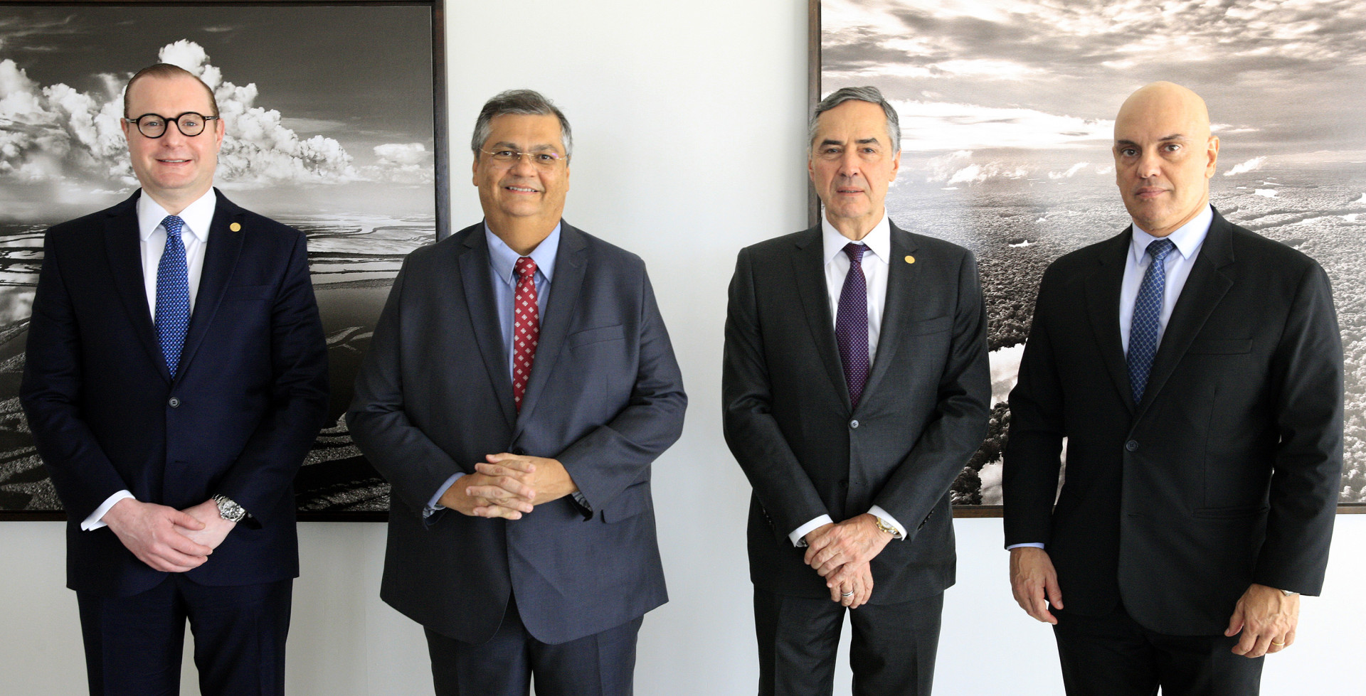 Um dia após ter a sua aprovação ao STF concretizada pelo Senado Federal, Flávio Dino se encontrou com membros do Supremo. Estiveram junto dele o presidente Luis Roberto Barroso e os ministros Alexandre de Moraes e Cristiano Zanin, este o último a ingressar na Corte, e também indicado por Lula.