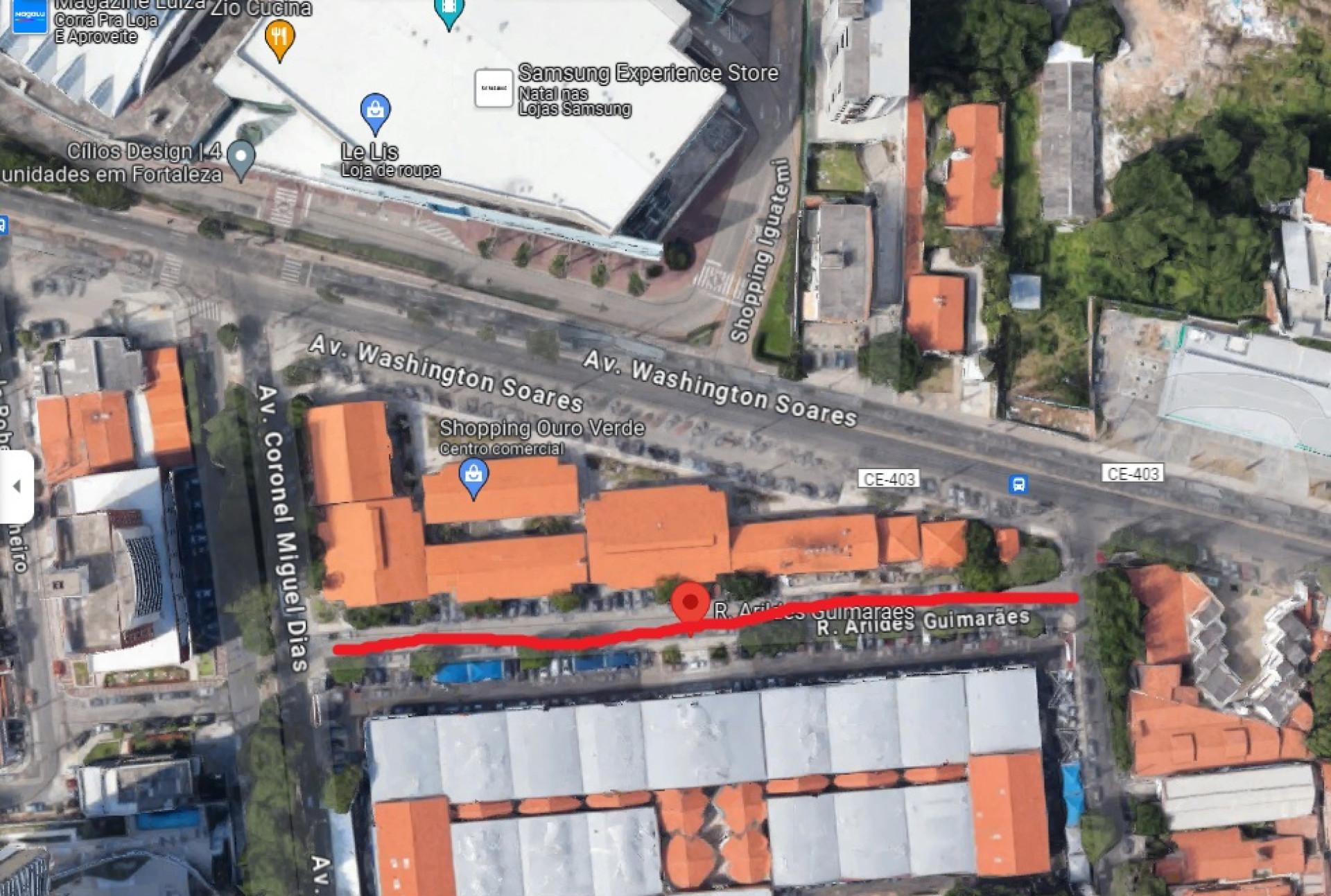 Outra área pública que pode se tornar privada é a rua Arildes Guimarães, de um quarteirão no bairro Guararapes, a poucos metros da avenida Washington Soares, nas redondezas do Iguatemi. A área tem 2.105,68 metros quadrados, além de um largo com 132,26 metros quadrados e, pela proposta da Prefeitura, será cedida à Delta Negócios Imobiliários Ltda.