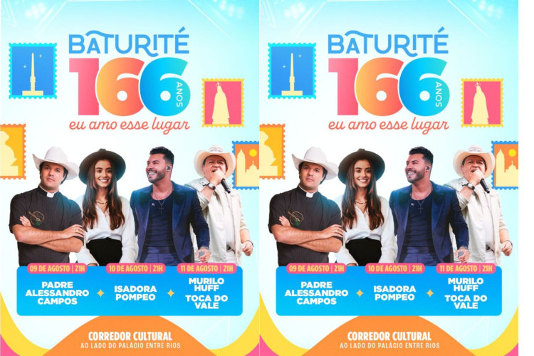 O evento tem três dias de programação, marcados para as datas 9, 10 e 11 de agosto. Entre as apresentações previstas, estão o cantor Murilo Huff, o padre Alessandro Campos, a pastora Isadora Pompeo e o cantor Toca do Vale.