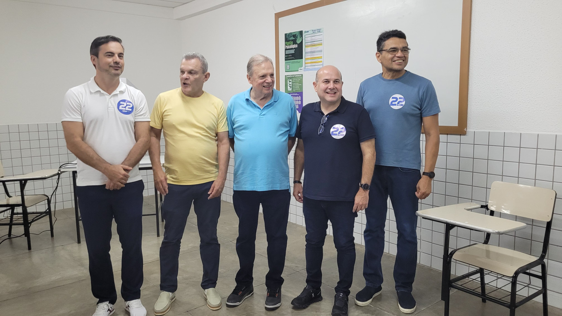 O ex-senador da República posou para fotos, no local em que votou, ao lado de Roberto Claúdio (PDT), Sarto (PDT) e Capitão Wagner
