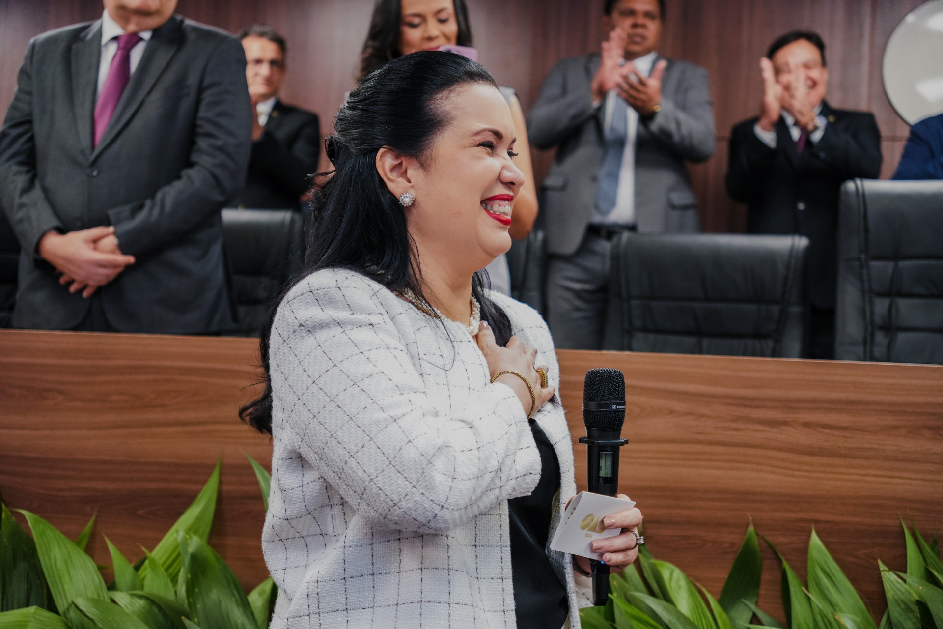 Realizada no auditório Miguel Oscar Viana Peixoto, na sede da instituição, a cerimônia também teve dois momentos simbólicos. O primeiro foi o convite para a mãe de Christiane, professora Lúcia Carioca, compor a mesa de autoridades e a entrega de uma flor à presidente feita pelo servidor mais antigo da casa, Evaldo Oliveira.