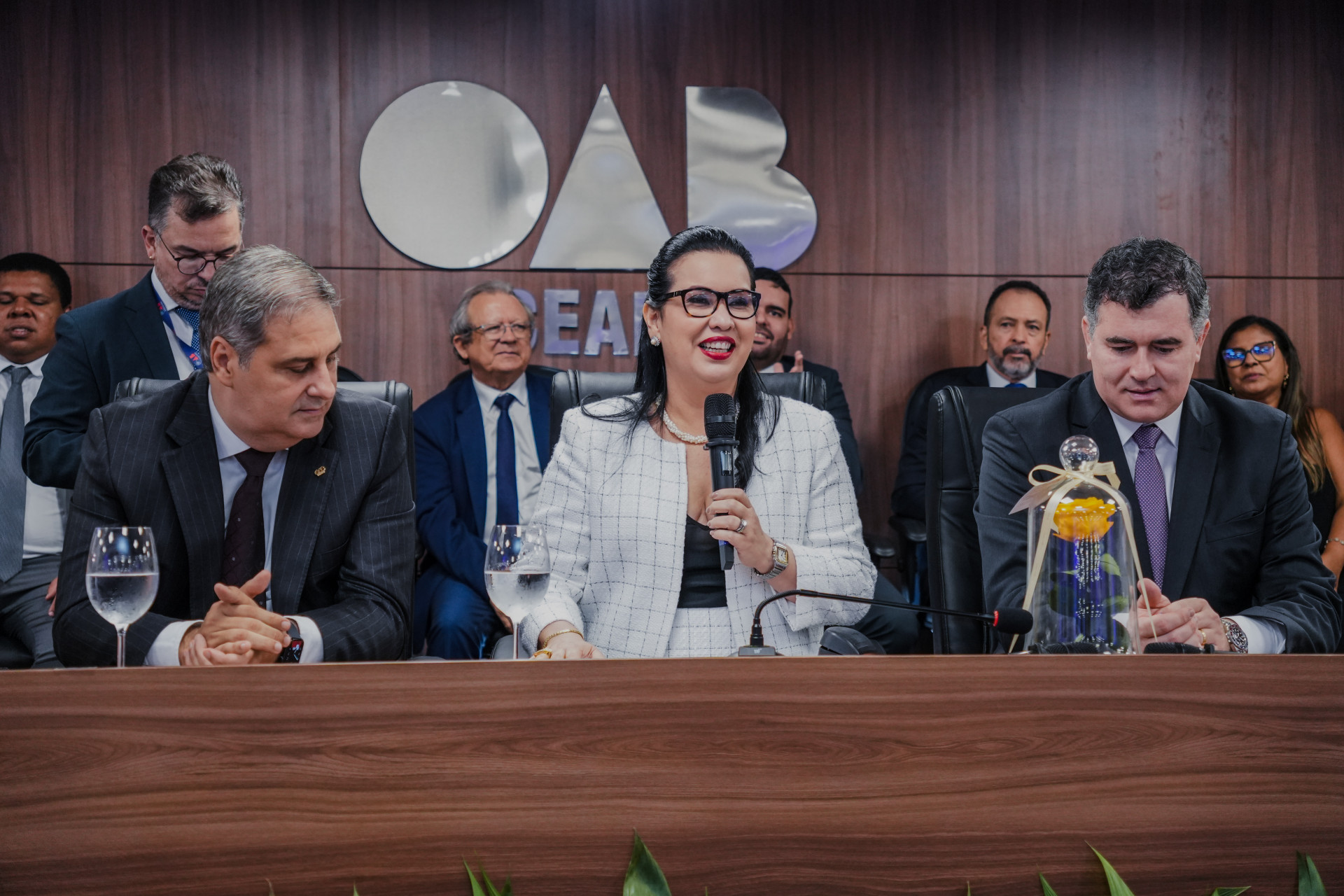 "Tenho certeza que ela não apenas é a primeira mulher presidente da história da OAB, não é apenas a presidente eleita com maior percentual de votos em toda a história da OAB, mas ela vai sair, ao longo desse mandato, a maior presidente de toda a história. Eu tenho certeza, já que ela tem um apoio maciço de toda a advocacia cearense", projeta o ex-presidente da Ordem.