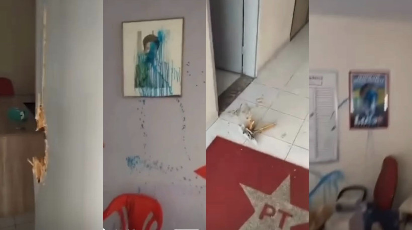 O PT disse nesta terça-feira, 14, que a sede do partido em Diadema (SP) foi invadida e vandalizada. Segundo o partido, dois computadores, três CPUs e uma impressora foram levados. Em imagens divulgadas pela sigla, é possível ver portas arrombadas e fotografias do presidente Luiz Inácio Lula da Silva (PT) e da ex-presidente Dilma Rousseff (PT) cobertas por tinta azul.