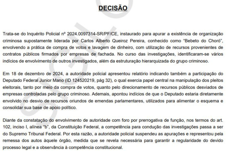 O deputado federal Júnior Mano (PSB) voltou à Câmara dos Deputados tendo contra si inquérito da Polícia Federal que o aponta como tendo 'papel central' em esquema de manipulação das eleições 2024, tanto por meio de compra de votos, quanto pelo direcionamento de recursos públicos desviados de empresas controladas pelo grupo criminoso.