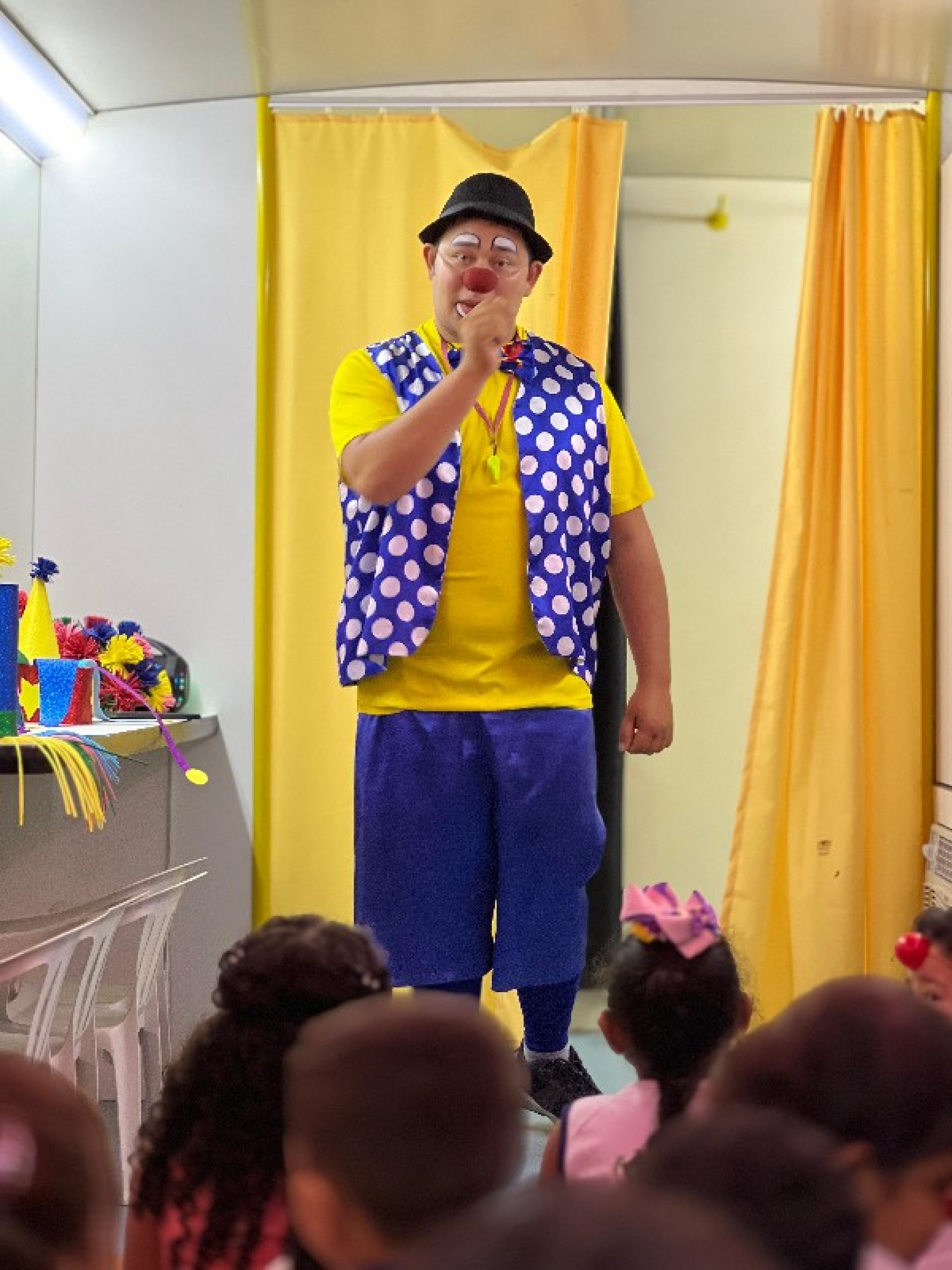 “As crianças menores, dos grupos Infantil I ao Infantil V, serão contempladas com um cortejo em suas salas de aula, respeitando seu espaço de convivência e evitando situações de desconforto, como medo ou estranhamento do ambiente. Já os alunos do Infantil V participarão de uma imersão no mundo circense.”