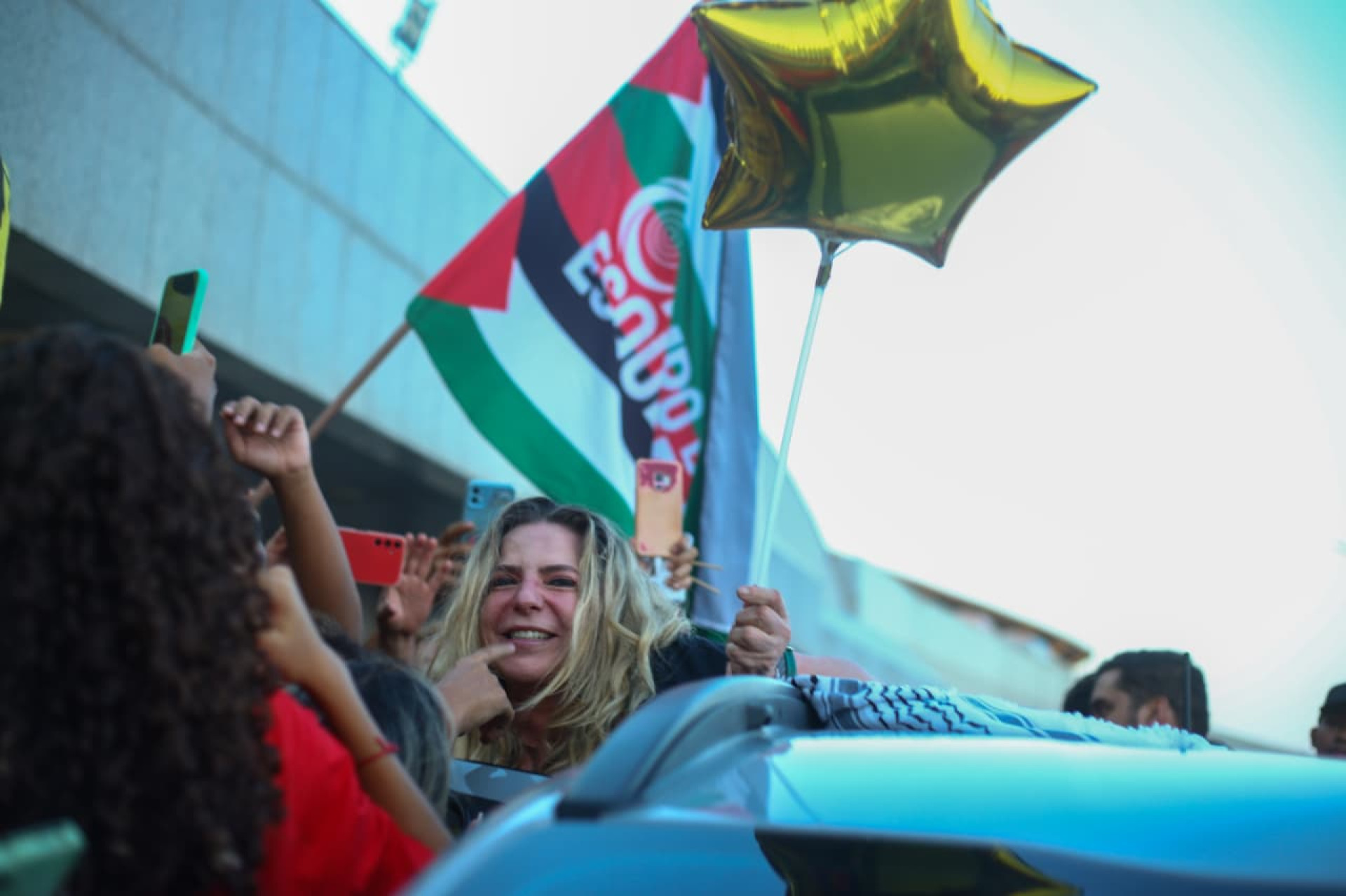 A deputada federal e ex-prefeita de Fortaleza, Luizianne Lins, (PT) desembarcou em Fortaleza por volta das 16h40min deste sábado, 11, e foi recepcionada pela militância que encheu o saguão do Aeroporto Pinto Martins. A retorno ocorre após integrar missão humanitária que tentava chegar à Faixa de Gaza, mas foi interceptada por Israel.