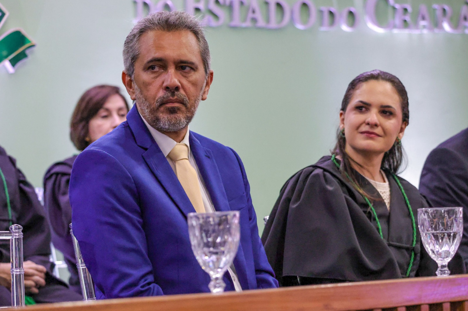 Durante o discurso da defensora, o governador Elmano, responsável pela nomeação de Sâmia para a função, também se emocionou. O filho mais velho dela, Davi, subiu ao palco para abraçar a mãe e continuou ao lado de Sâmia durante o discurso. O governador não falou na solenidade, ele deixou a sede da instituição no fim do evento por conta de uma agenda em Brasília.