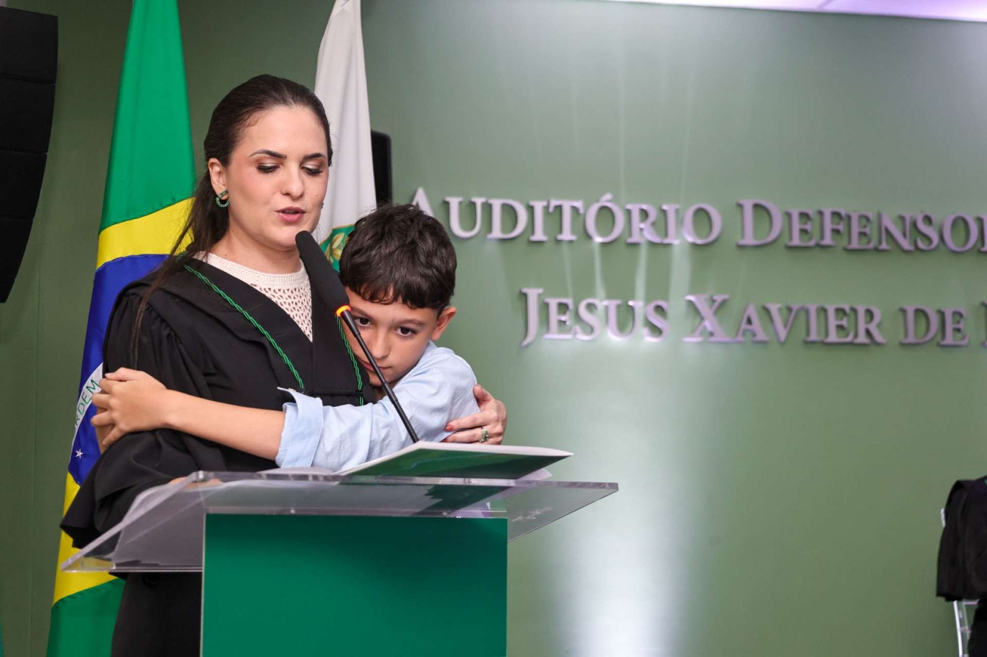 A defensora agradeceu a presença de autoridades, amigos e aos dois filhos, que estavam no evento, não contendo a emoção em diversos momentos. "Nos últimos dois anos, atravessei dores que não cabem em discursos. A vida desarrumou a casa, desmontou as certezas, expôs rachaduras e me expôs a crescer no exato ponto em que tudo parecia cair", discursou a defensora.