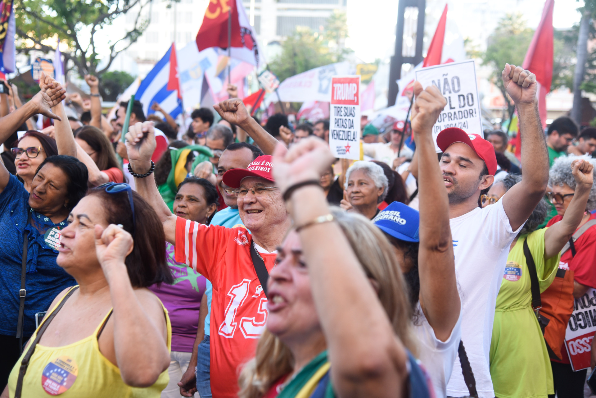 “Hoje é dia de defender a democracia, mas também é dia de defender a América Latina, porque houve uma invasão militar dos Estados Unidos à Venezuela. As pessoas podem ter qualquer dúvida sobre qual é o caráter do governo do Maduro, mas não pode ter dúvida de que Maduro foi sequestrado pelos Estados Unidos, ele e a sua esposa, e precisam ser libertados”, frisou.