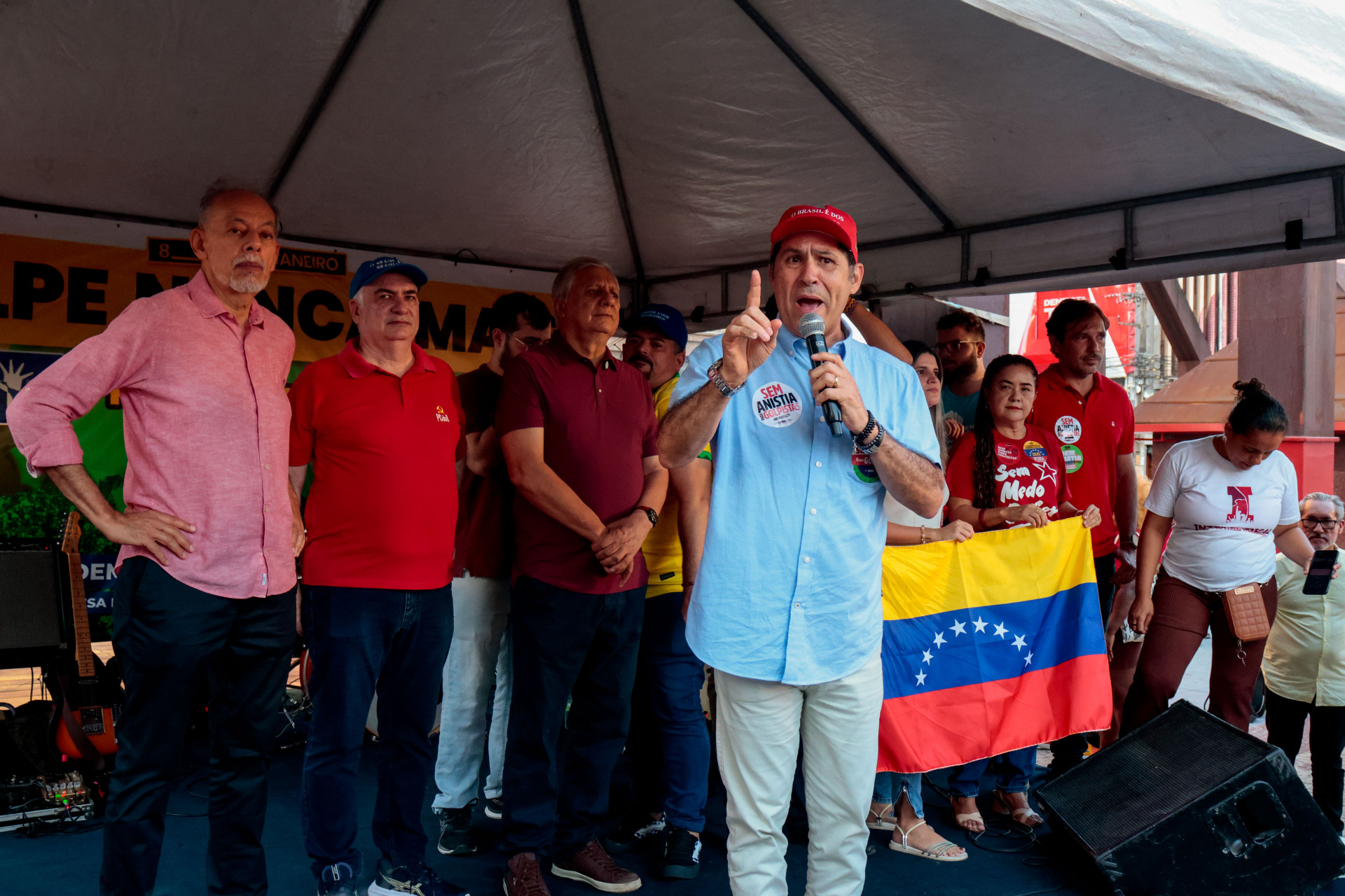 “A América e o hemisfério sul passam por um momento muito complexo. O que nós assistimos com o sequestro de um presidente, e aqui ditadura seja de esquerda e de direita é ditadura, mas não dá o direito de um país invadir outro e sequestrar o seu presidente. Esse é o momento para a gente trazer para o debate político, um momento complexo que nós vivenciamos. Considero fundamental que a gente possa em praça pública debater, repercutir nas nossas redes sociais e se constituir um polo de defesa da democracia, do Estado Democrático de Direito, mas, sobretudo, das nossas instituições”, afirmou.