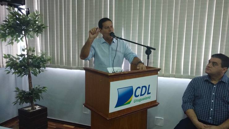 No evento, promovido pela Câmara de Dirigentes Lojistas (CDL) da Cidade, Mourão critica os benefícios trabalhistas quando passa ao tema da reforma trabalhista. "Temos algumas jabuticabas que a gente sabe que é uma mochila nas costas de todo empresário brasileiro. Jabuticabas brasileiras: 13º salário. Se a gente arrecada doze, como pagamos treze? É complicado".