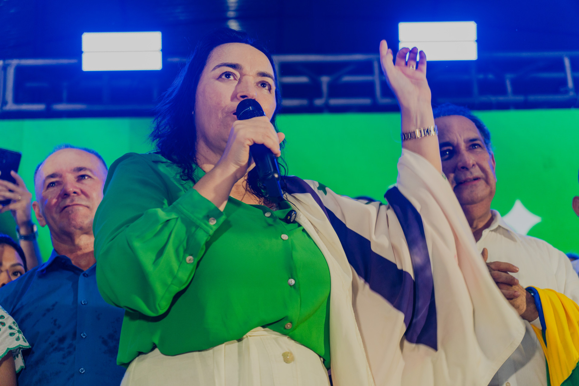 "Estou aqui abraçada com a bandeira de Maracanaú (...) Eu não nasci em Maracanaú. Eu estou vindo para Maracanaú em missão. Meu vínculo com Maracanaú é político e agora de coração filha adotiva de Maracanaú quando vocês me abraçam com essa recepção", afirmou.