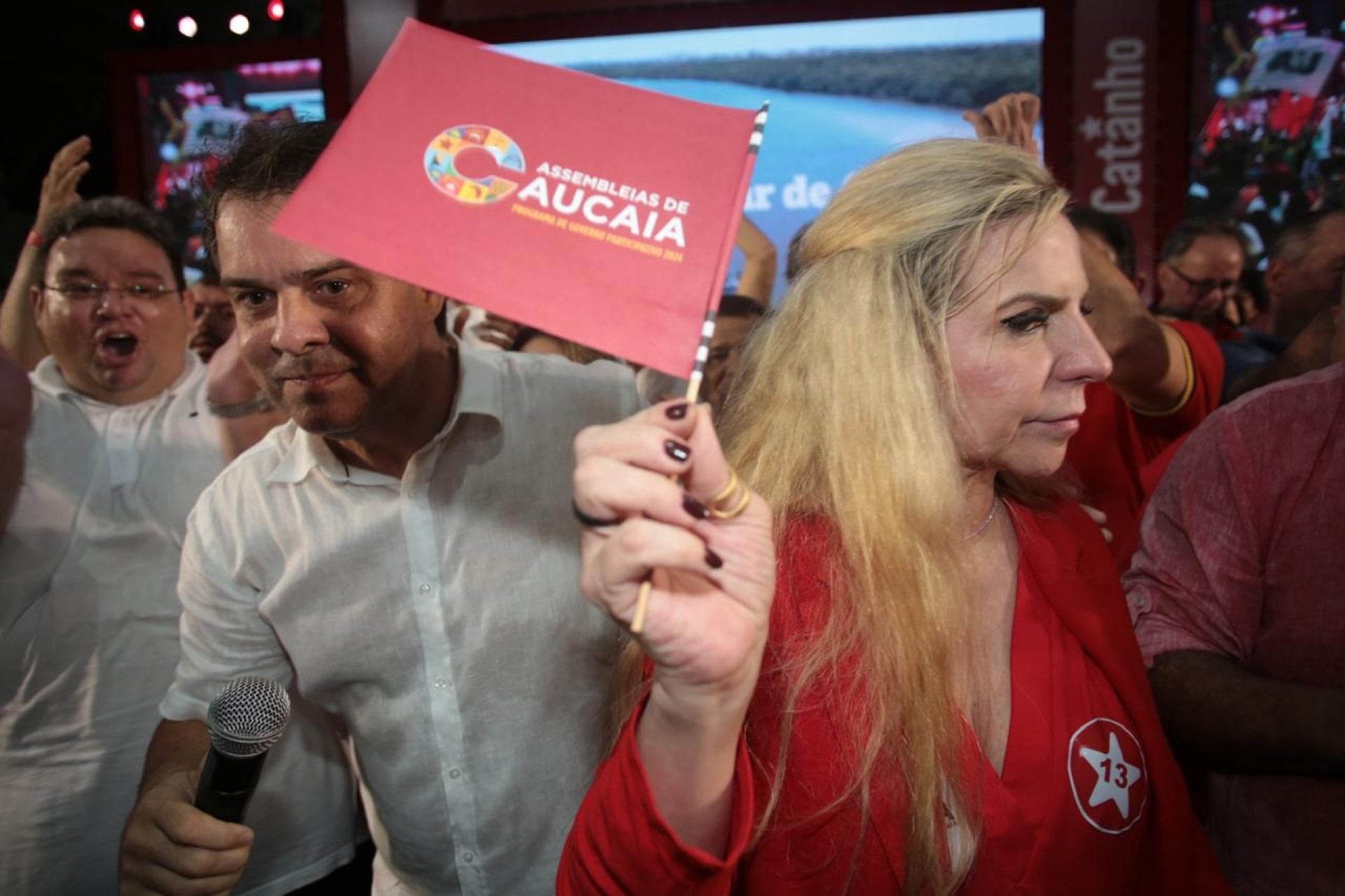 O candidato do PT a prefeito de Caucaia, Waldemir Catanho, é oficializado em convenção neste domingo. Estão presentes o candidato a prefeito de Fortaleza, Evandro Leitão (PT), e a deputada federal Luizianne Lins (PT).