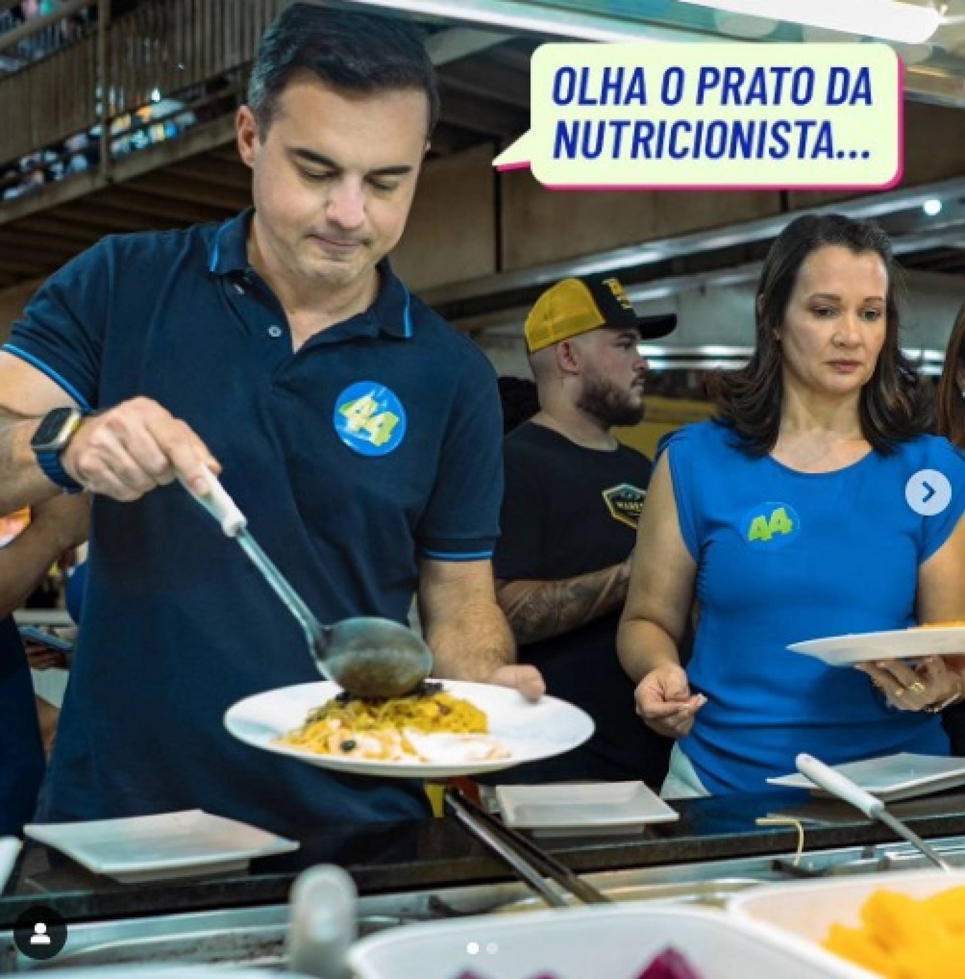 Capitão Wagner apareceu fazendo o prato e já pensando na desculpa que daria para a nutricionista. Afinal, não é fácil balancear a alimentação na correria da campanha eleitoral.