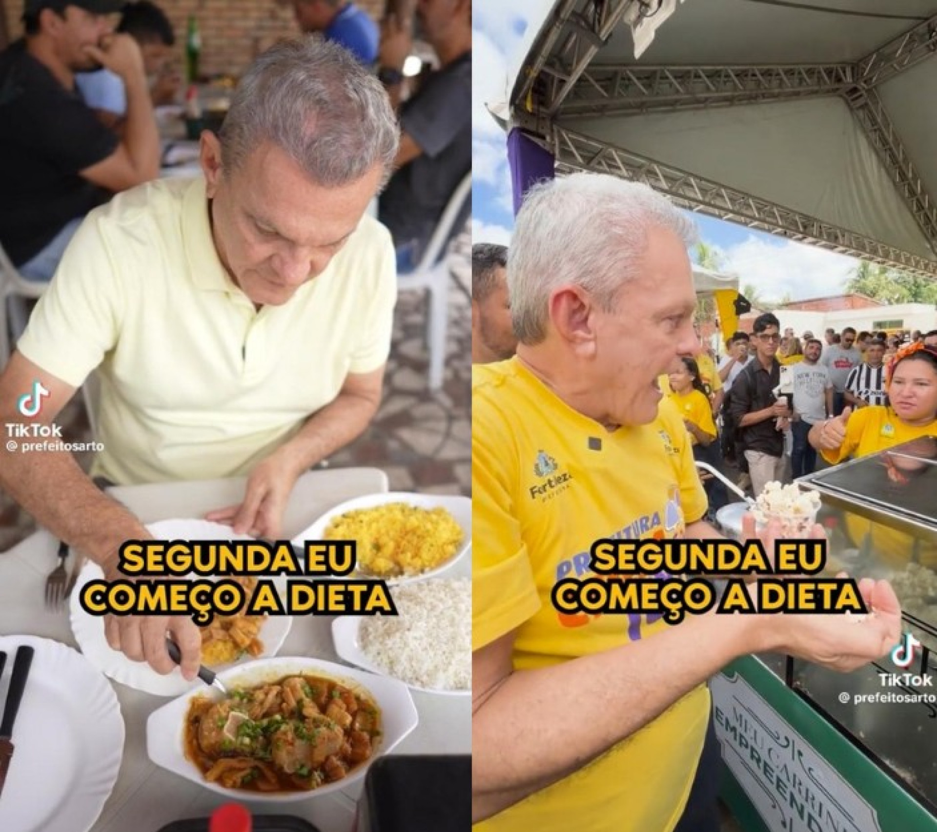 Nessa temática, o prefeito José Sarto (PDT) foi além. Aproveitando-se do estilo mais despojado adotado, combinando com a rede social mais apropriada para isso, o TikTok, o pedetista postou dois vídeos em que aparece comendo diversos tipos de comida.