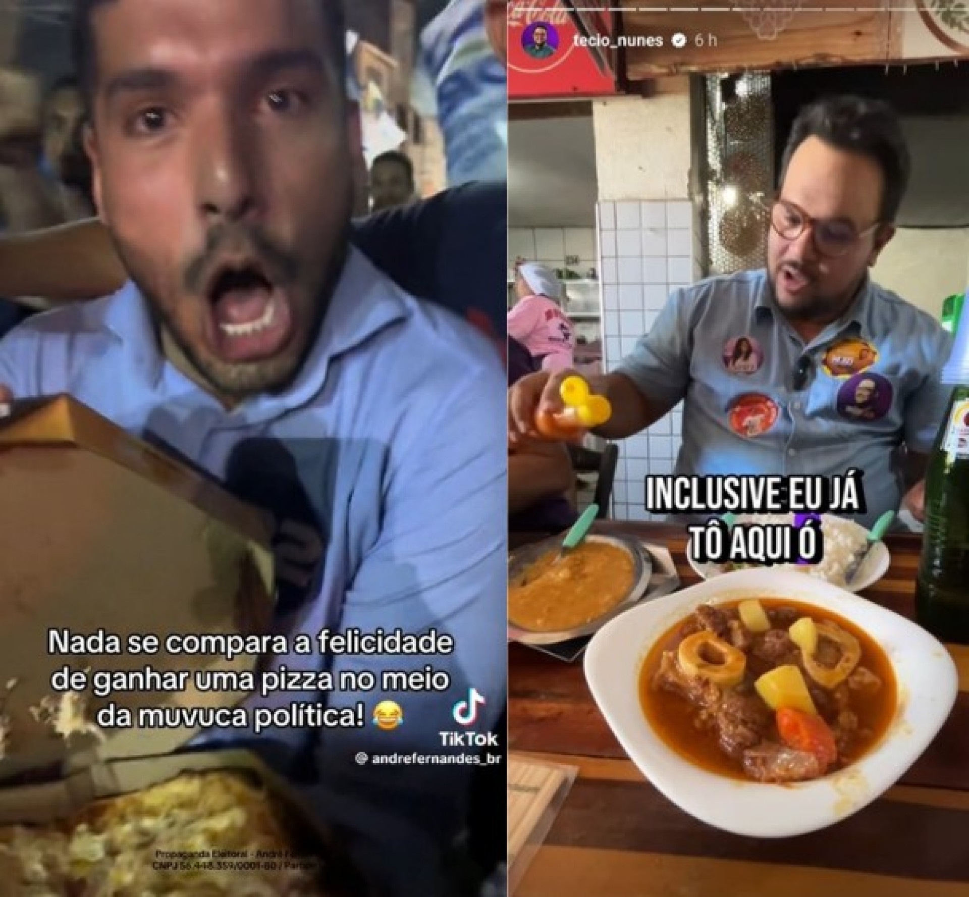 André Fernandes (PL) apareceu algumas vezes nas postagens ganhando comida de simpatizantes, durante atos de campanha pelas ruas da cidade. Em uma delas, ganha água e refrigerante de um motociclista, enquanto outra vez ganha uma pizza grande inteira durante caminhada