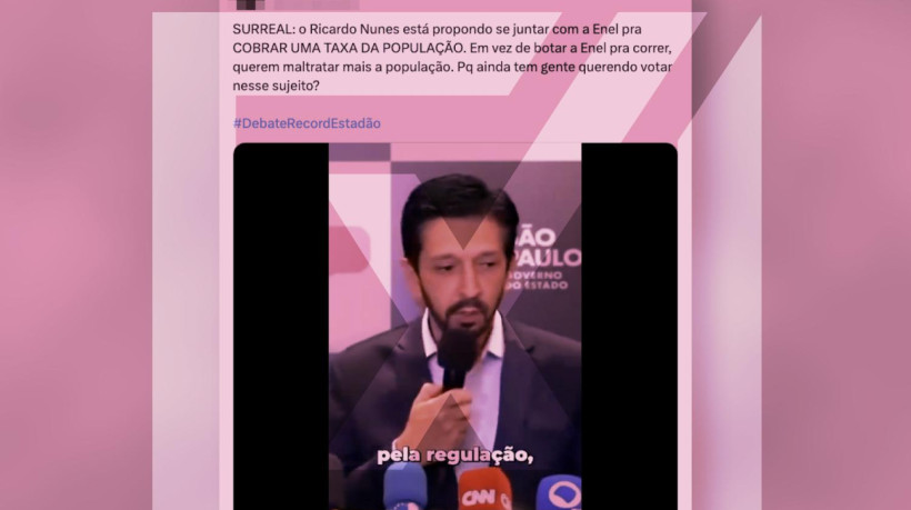 Conteúdo investigado: Posts sobre os problemas no sistema elétrico da cidade de São Paulo. Um deles afirma que “Ricardo Nunes está propondo se juntar com a Enel pra cobrar uma taxa da população”. Outro diz que “para resolver os problemas causados pela Enel e pela incompetência da Prefeitura, Nunes propôs uma ideia ‘genial’ para que eles possam cobrar uma taxa de melhoria da população.”