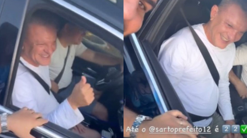 O prefeito, conforme o registro em vídeo, está em um carro no banco do passageiro. Ele não está usando blusa ou qualquer adereço que ligue a André Fernandes. O veículo aparece em velocidade lenta e apoiadores do candidato do PL interagem com Sarto. "Olha o Sarto. É 22", diz um dos apoiadores. Eles usam blusas e é possível ouvir jingles da campanha de André no fundo do vídeo.