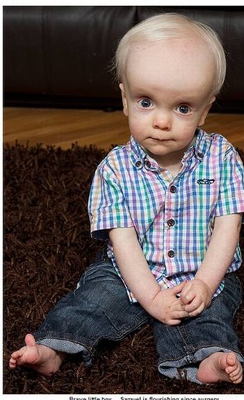 De acordo com informações do tabloide "The Sun", os pais do pequeno Samuel, que nasceu em Essex, perceberam pouco tempo após o nascimento que ele possuía um inchaço na cabeça. Com oito semanas de vida o menino foi encaminhado para novas avaliações.