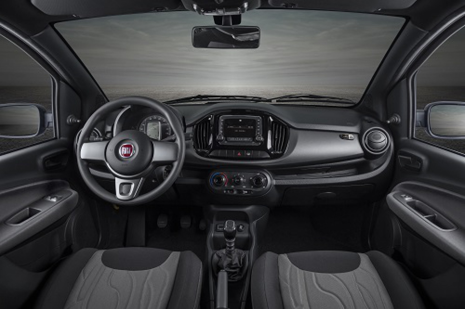 Por dentro, o Uno Ciao adota um padrão mais escurecido e acabamento bicolor em tons claros nas portas e na faixa central que cruza o painel. Nela fica a plaqueta numerada, de 001 a 250 e os bancos apresentam acabamento diferenciado e apoio de braço para o banco do motorista.