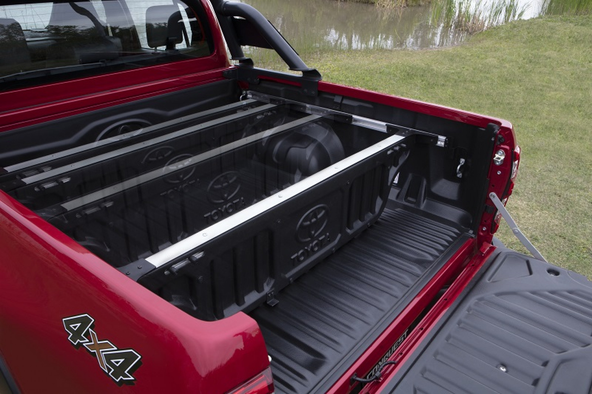 Ainda na versão GR-Sport, a Hilux segue com a sua suspensão diferenciada das outras versões, como novas molas, para ganhar maior rigidez, amortecedores monotubo com aumento de 30% no diâmetro, o que oferece respostas mais diretas e lineares em condições de alta velocidade, tanto em terrenos dentro quanto fora de estrada.