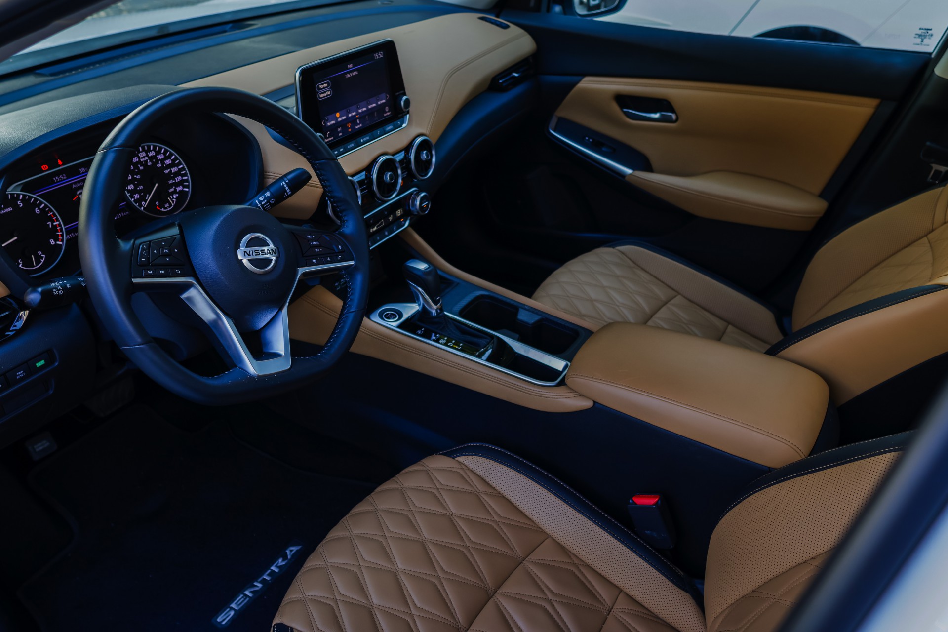 O Nissan Sentra 2023 está disponível em três versões: Advance 2023 (R$ 149.990), Exclusive 2023 (R$ 173.290) e Exclusive 2023 Interior Premium (R$ 174.990, com interior de couro na cor caramelo).