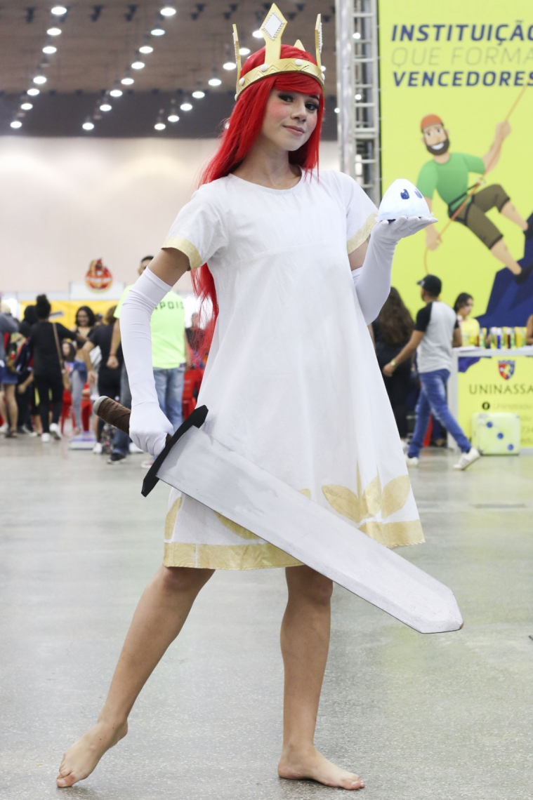 O cosplay, termo que designa a atividade em que as pessoas se fantasiam de personagens de diferentes obras da cultura pop e encarnam suas personalidades, é marca registrada e, talvez, o fato mais conhecido sobre o Sana daqueles que o vêem de fora. No entanto, até o mundo cosplayer pode surpreender os desavisados. O casal Albani e Carlos Paiva é um exemplo de surpresa. Ambos de João Pessoa, são casados há 40 anos - ela tem 59 e ele, 68 - e fazem cosplay desde 2015 por influência da filha. “Ela é louca por eventos assim, mas nós não conhecíamos, aí um dia ela falou que a gente tinha que vir e nos convenceu, de primeira, a ir já como personagem”, contextualizou Albani, vestida de Muriel, personagem do desenho animado “Coragem, o Cão Covarde”, enquanto segurava um “Coragem” feito de tecido. Carlos, vestido de Eustácio, marido de Muriel, conta que o casal veio a Fortaleza somente para o Sana. “Já viajamos muito, estivemos em Recife, participamos da Comic Con Experience (evento em São Paulo)”, contou, numa pausa rápida entre os vários pedidos de fotos do público.