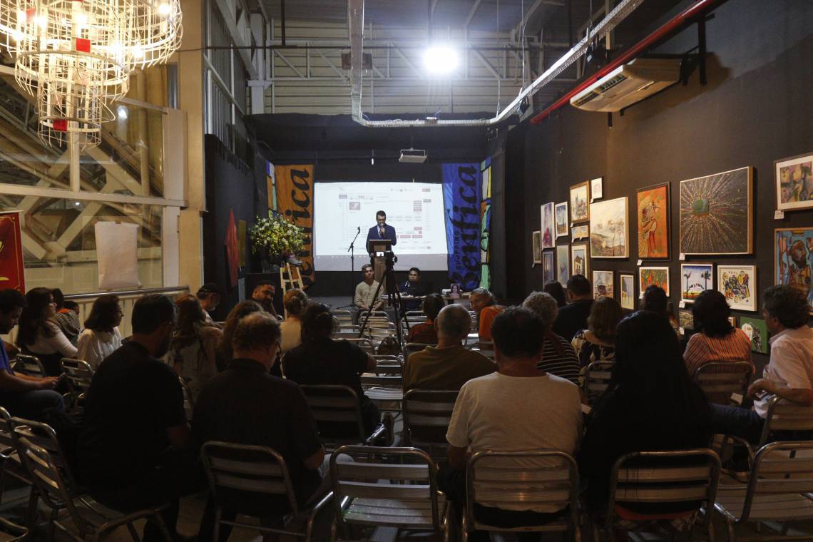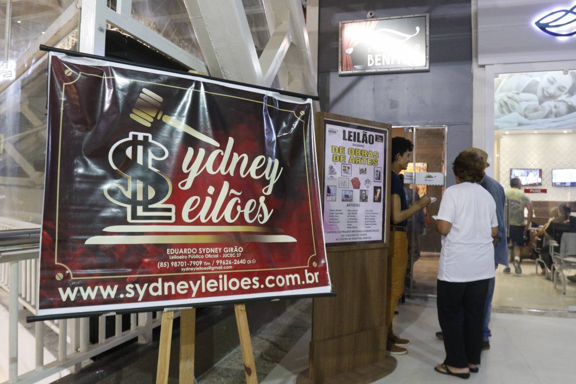 Leilão reuniu mais de 60 obras de diversos artistas cearenses no shopping Benfica na noite desta quinta-feira, 12. Dentre as obras leiloadas estavam produções de Fagner, Belchior, Falcão, Zé Tarcísio, Emília Porto, Adísia Sá e outros artistas cearenses. Todos os itens foram doados pelos próprios artistas, colecionadores ou pessoas físicas. Os lances eram condicionais, ou seja, cada participante poderia informar quanto gostaria de pagar por cada obra e, em um prazo de até três dias, receberá uma resposta informando se o valor sugerido foi aceito ou não. O objetivo do leilão é angariar fundos para apoiar as causas do movimento “Crítica Radical”, em especial o projeto do convivência compartilhada no sítio “Brotando a Emancipação”, que existe há 6 anos.