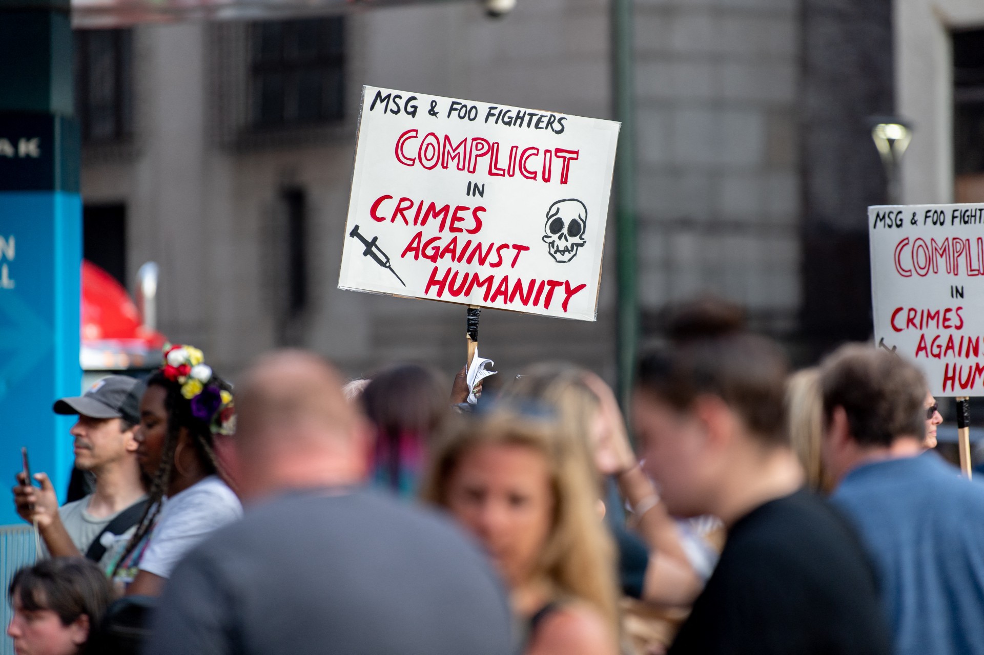 A situação causou protestos com defensores do movimento antivacina no país. Um grupo se reuniu fora do Madison Square Garden com cartazes que acusavam a banda de ser um cúmplice de “crimes contra a humanidade”.