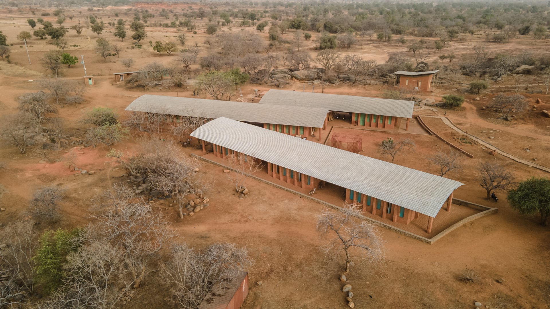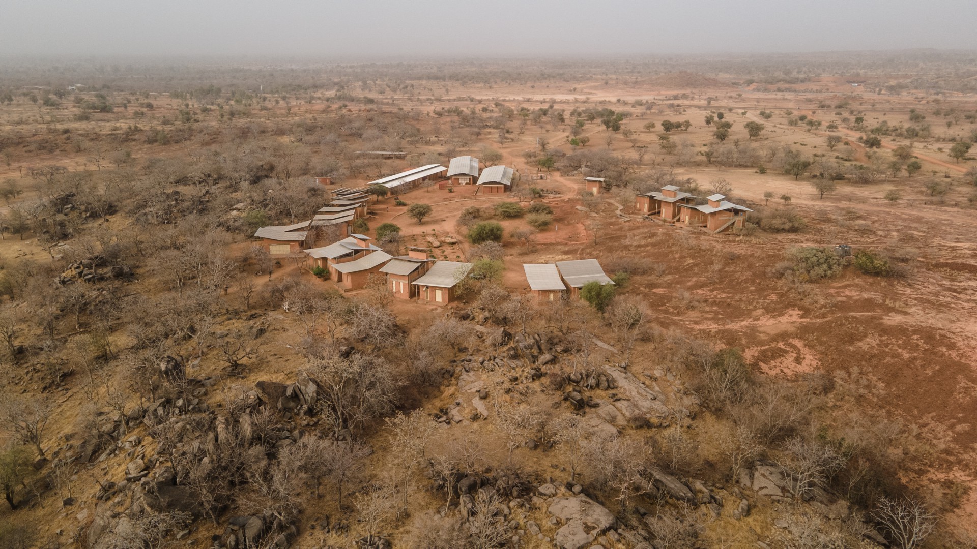 Os prédios, que misturam plantas e rochas de granito em perfeita harmonia, ficam no alto de uma colina. Em sua construção, foram usados materiais locais, como argila, laterita, granito e madeira. O objetivo é que sejam resistentes às condições climáticas da região, como o calor extremo, explica o administrador do complexo, Motandi Ouoba.