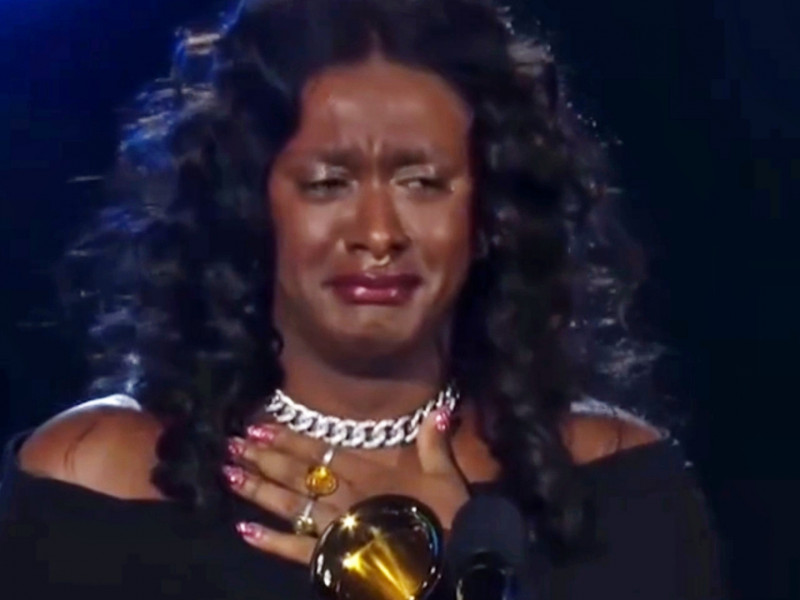 Na cerimônia em que a artista foi premiada, mesmo já tendo iniciado tratamento hormonal, ela optou por não se apresentar como mulher e usar costeletas falsas e desenhos no rosto com um lápis a fim de parecer mais masculina.