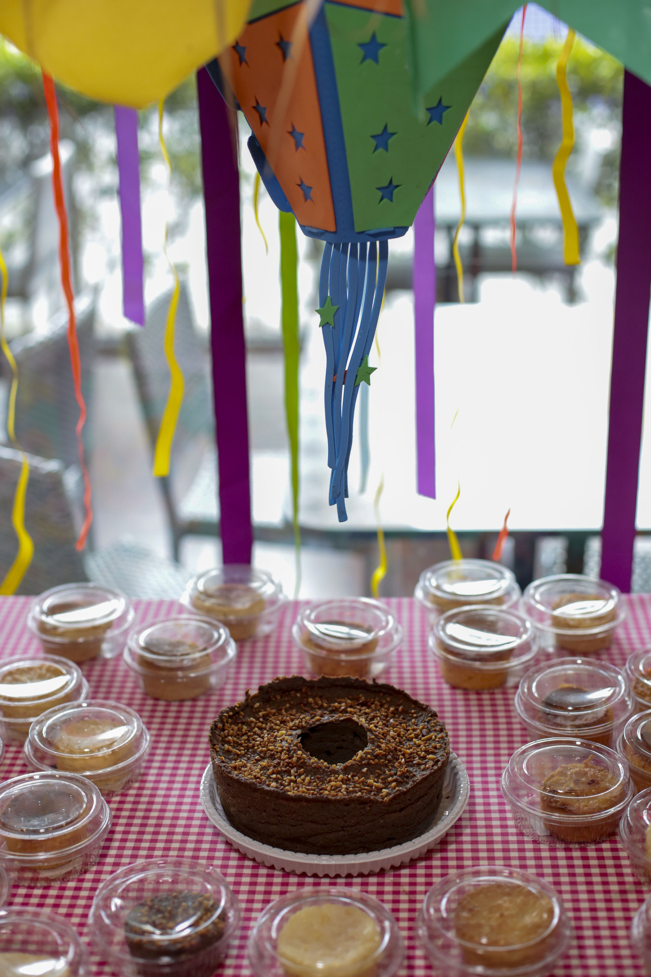 A Doce Gula também trouxe em seu cardápio junino o bolo pé de moleque, disponível em dois formatos. Um deles é o retangular, que serve até 15 fatias e custa R$ 109. Já o redondo, sai por R$ 54,90 e serve até cinco fatias.