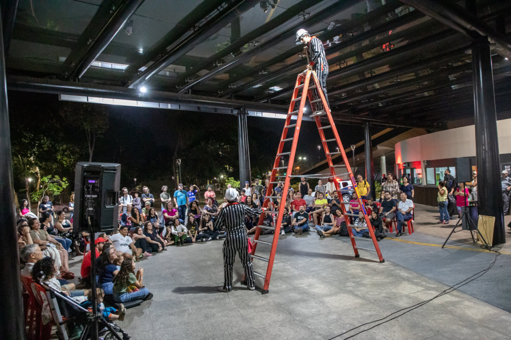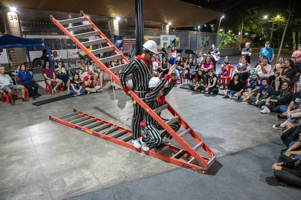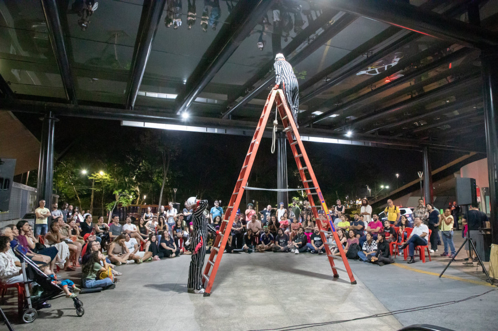 A arte de rua, por sua vez, se encontra em “Grand Finale”. O espetáculo é apresentado em Rio Preto até esta quarta-feira, 24. A partir do jogo da forca, a obra traça um diálogo entre artistas e operários, abordando a luta dos trabalhadores da cultura e seus riscos com a corda no pescoço.