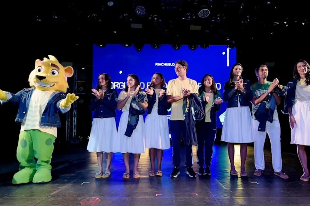 O tão polêmico traje da cerimônia de abertura das Olimpíadas de Paris 2024 foi feito pela Riachuelo. Seguindo a linha despojada, o chinelo veio para sua segunda edição, desta vez com uma saia longa ou calças brancas para a parte inferior. A blusa vem é amarela ou verde, com listras brancas, acompanhada de uma jaqueta jeans bordada a mão por artesãs do interior do Rio Grande do Norte — a parte mais interessante do look.