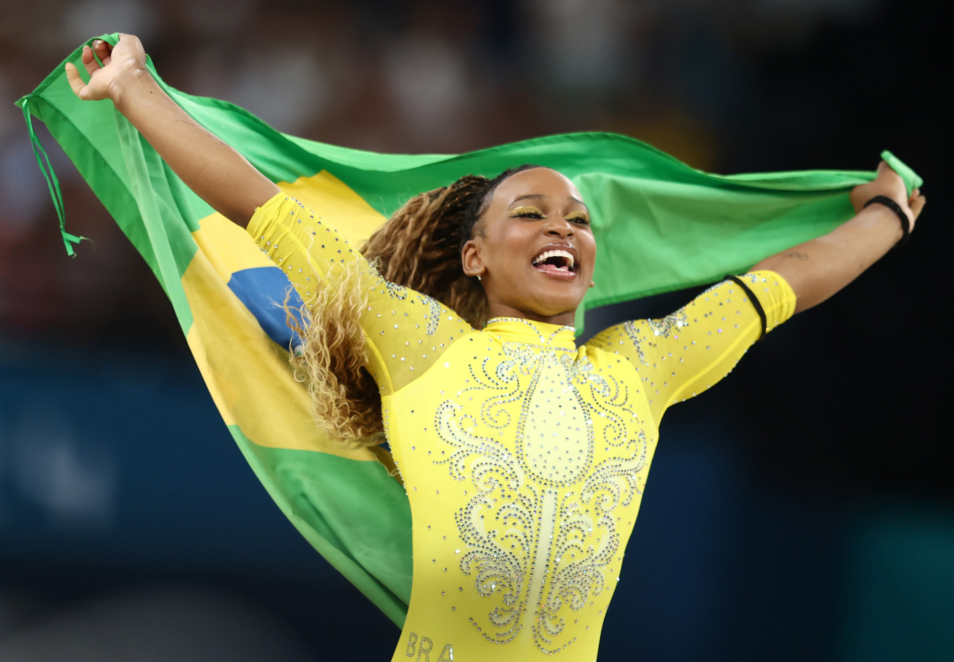 Ginasta brasileira Rebeca Andrade recebeu parabéns da ganhadora do Oscar Viola Davis após conquistar a medalha de prata na ginástica durante as Olimpíadas de Paris 2024