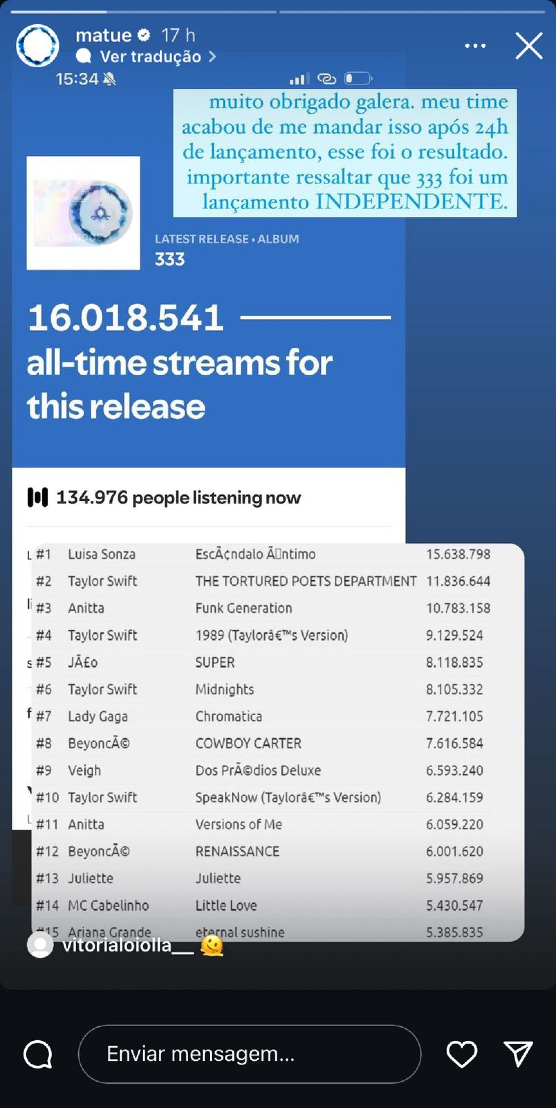 Matuê lança de surpresa novo álbum e supera Luísa Sonza e Taylor Swift