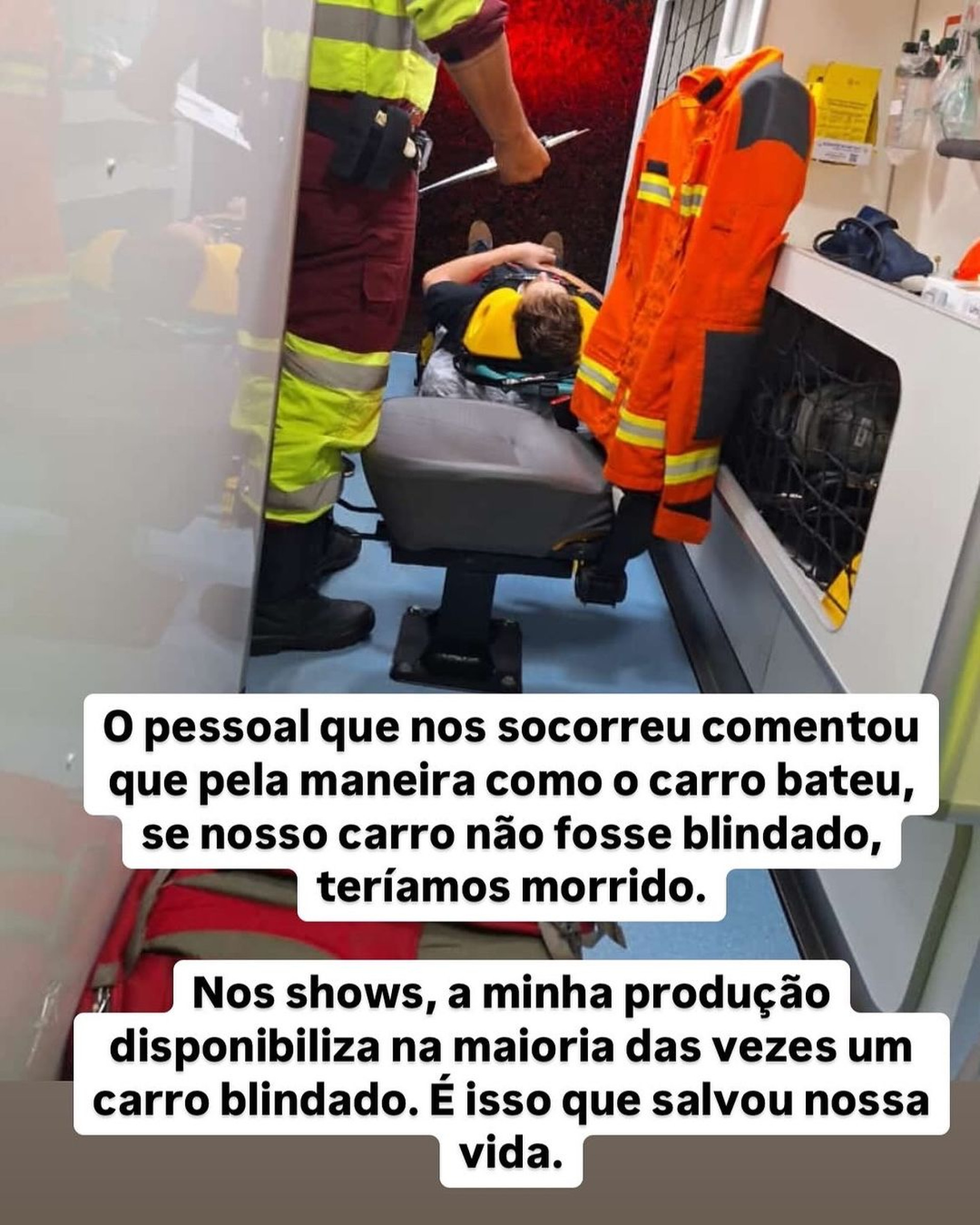 Ainda em suas redes sociais, o francês contou que foi salvo pelo fato do carro em que estava ser blindado. “O pessoal que nos socorreu comentou que, pela maneira como o carro bateu, se nosso carro não fosse blindado, teríamos morrido”.