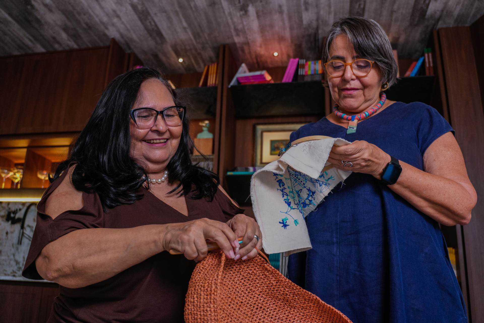 Ao chegar à CasaCor Ceará, meu receio inicial era que as participantes se mantivessem reservadas, evitando interação. Logo nos primeiros minutos, o receio desapareceu: todas se deram bem e o diálogo fluiu naturalmente, permeado por troca de experiências sobre trabalhos manuais.
