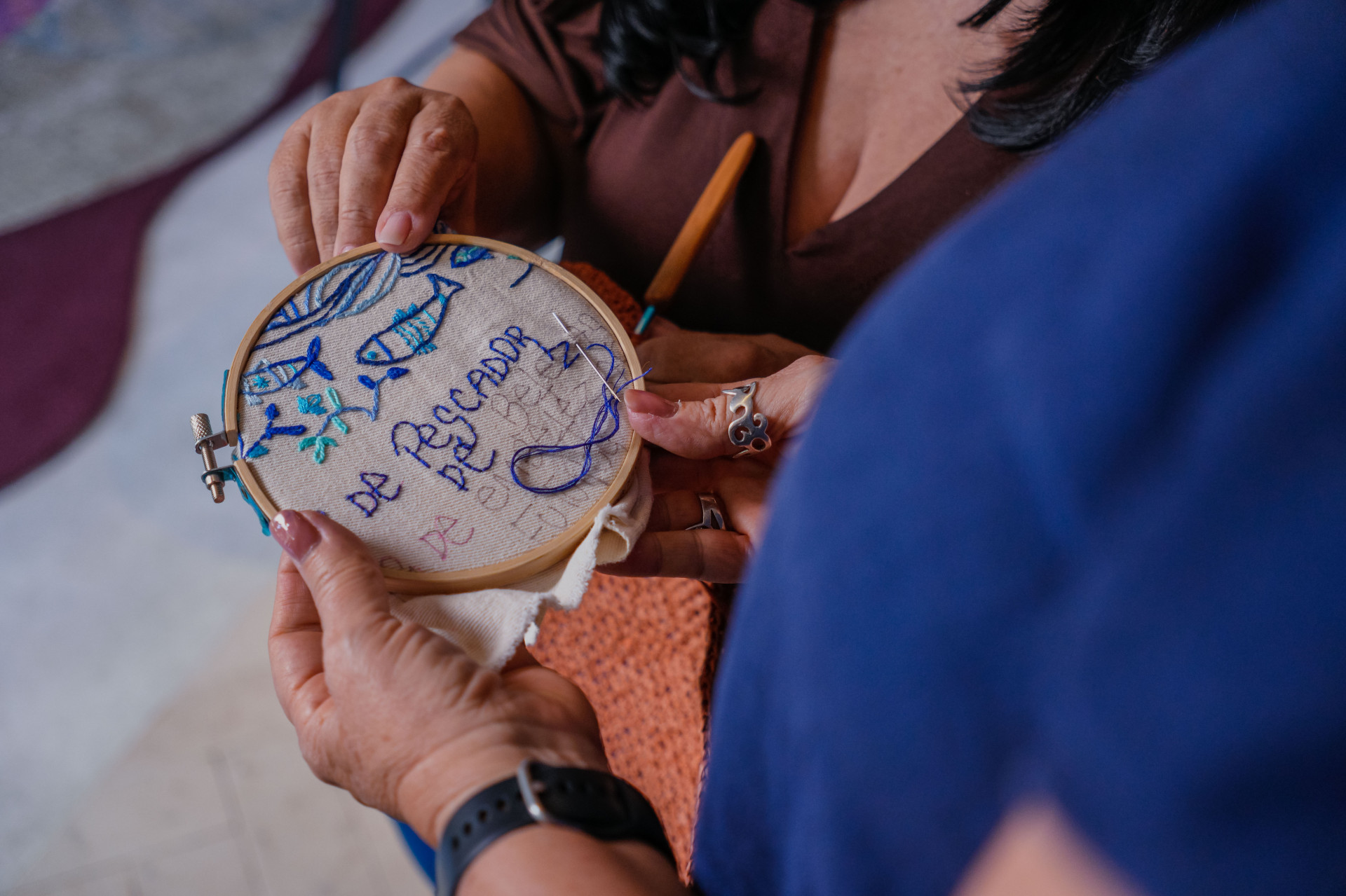 Entre risos, relatos de erros desmanchados e explicações detalhadas sobre técnicas, ficou evidente que cada ponto é mais que um gesto: é memória, aprendizado e conexão.
