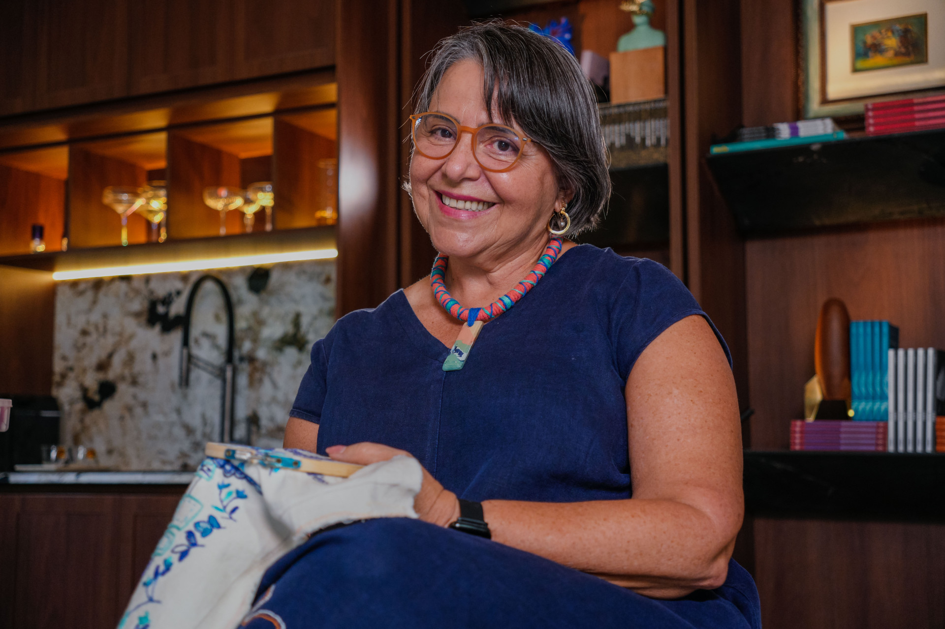 Teresa Queirós, 62 anos, psicóloga, se aproximou das atividades manuais a partir da pintura e da costura, antes de descobrir o bordado livre.